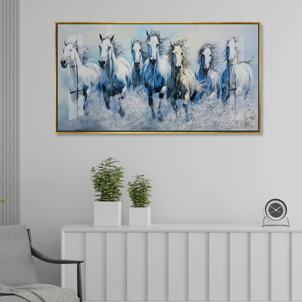 7 Running White Horses Canvas Painting