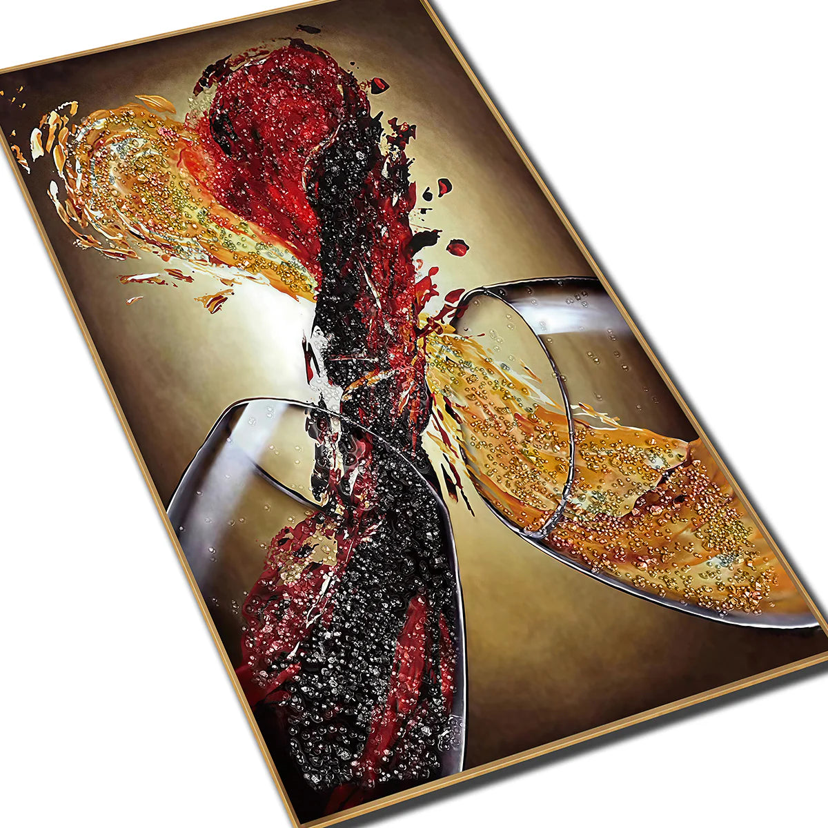 Abstract Wine Splash Acrylic Painting - Red & White Wine Heart Wall Art