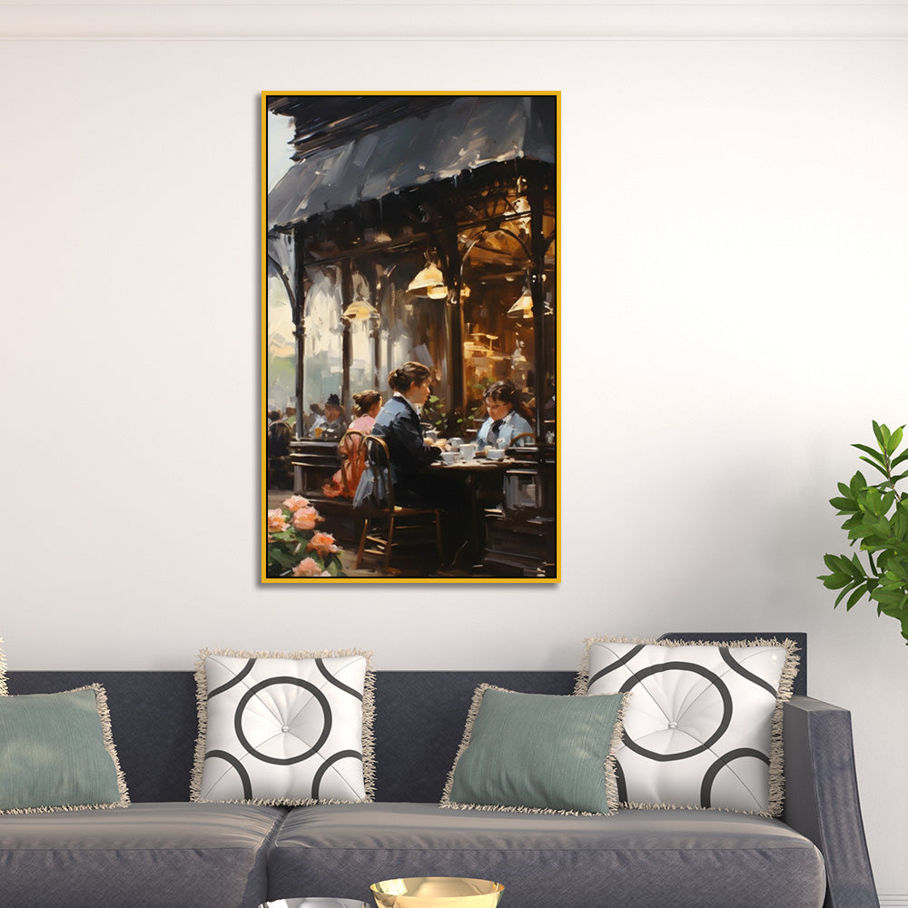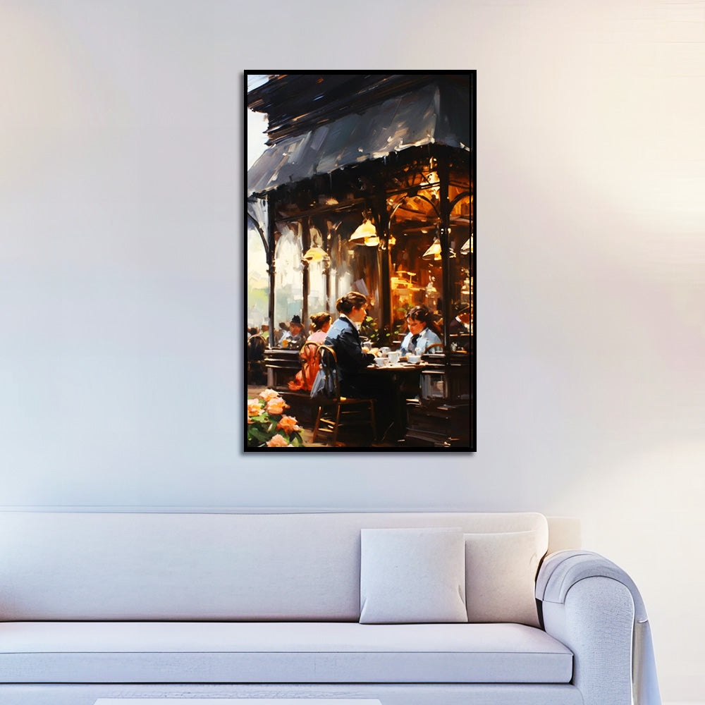 Style: Vintage Art, Impressionist Style, Café Scene Art, European Cityscape, Oil Painting Print