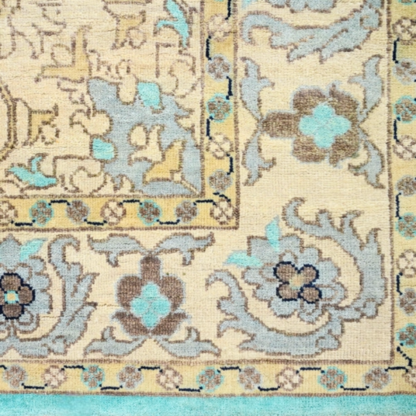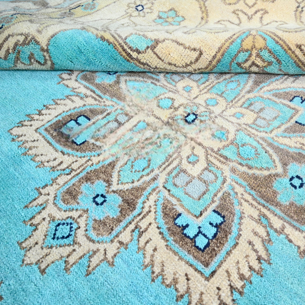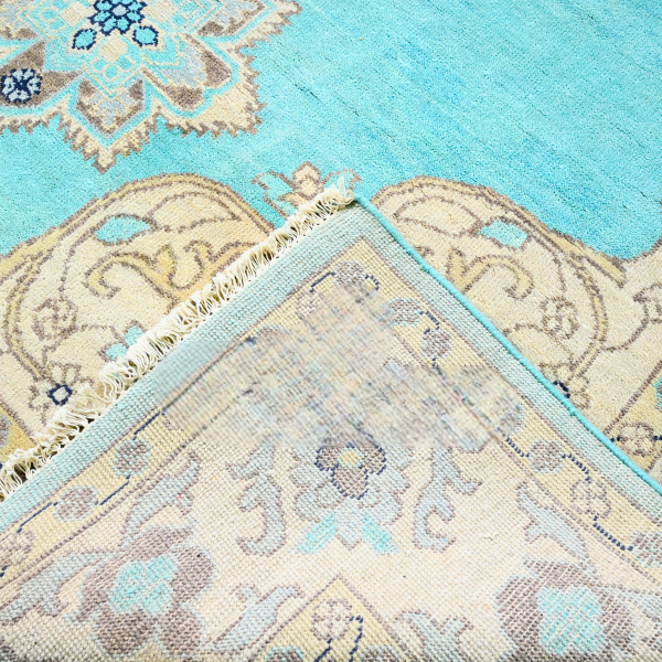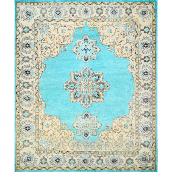 Aquaora is a refreshing take on timeless Persian elegance. With its vibrant turquoise field and delicately woven floral medallions, this rug becomes an instant showstopper — perfect for illuminating dining spaces, grand lobbies, or statement corners. Crafted using 100% premium New Zealand wool and a durable cotton warp, it balances opulence with endurance. The rich traditional patterns combined with the luminous color palette make Aquaora a bespoke treasure for discerning interiors.