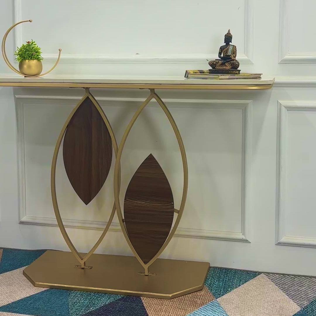 Elevate your living space with this Artistic Console Table featuring a pristine white marble top that offers both durability and timeless elegance. The unique leaf-inspired base adds a sculptural element, blending nature-inspired artistry with functional design. Ideal for entryways or hallways, this table serves as a refined statement piece, combining aesthetic appeal with practical surface space. Crafted for discerning interiors, it balances sophistication and organic form to enhance any modern or classic setting.