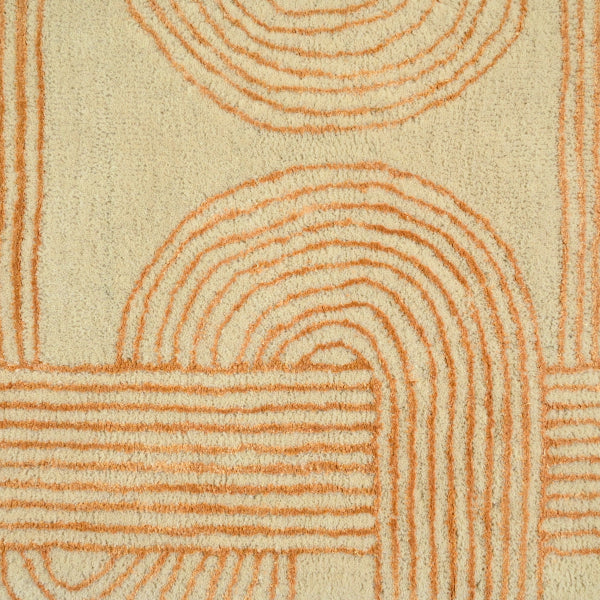 Aurix channels modern artistry through fluid, maze-like contours rendered in warm terracotta against a muted ivory ground. The hand-tufted New Zealand wool adds depth with its sculpted texture, creating a sophisticated interplay of pattern and form. Ideal for design-forward spaces, this rug invites curiosity and calm in equal measure