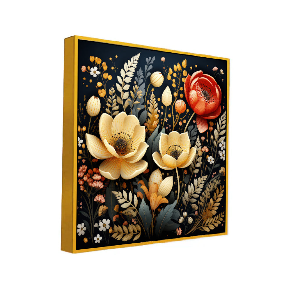 • Beautiful Golden & Red Flowers Digital Printed 3d Art Canvas Wall Painting