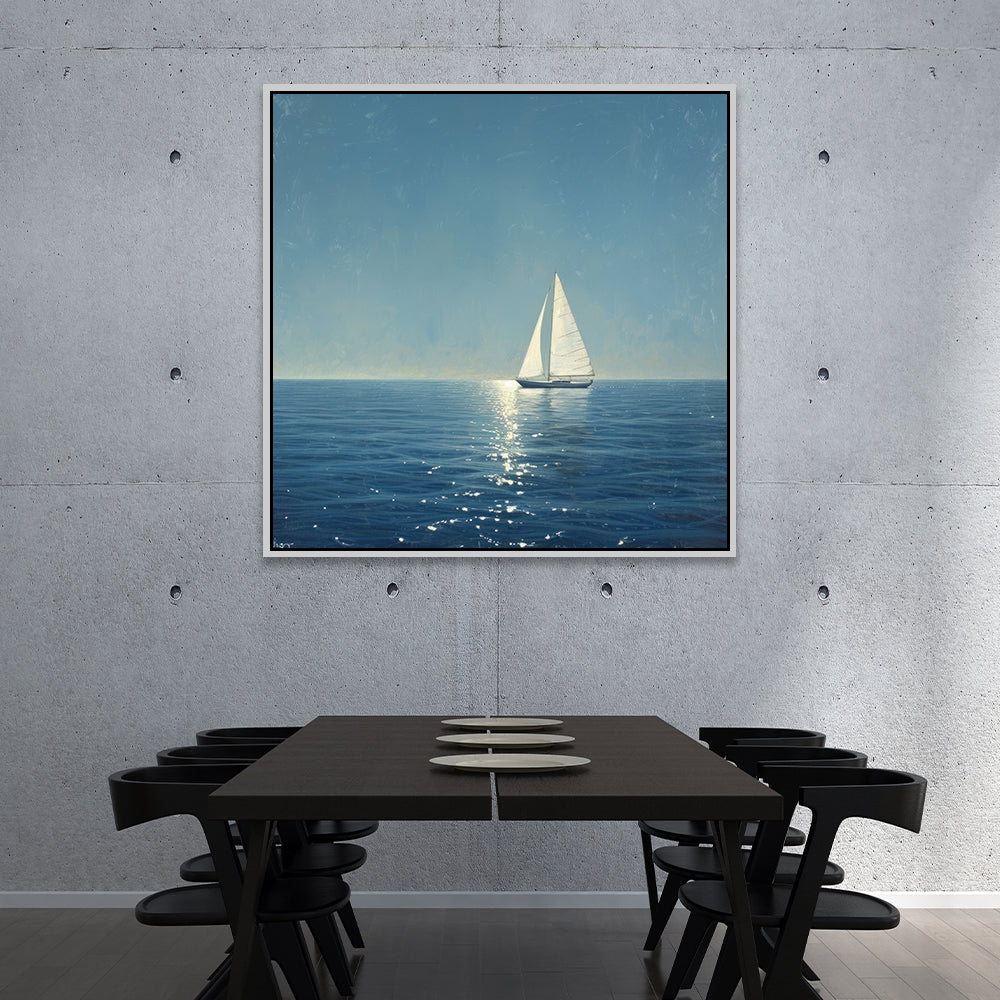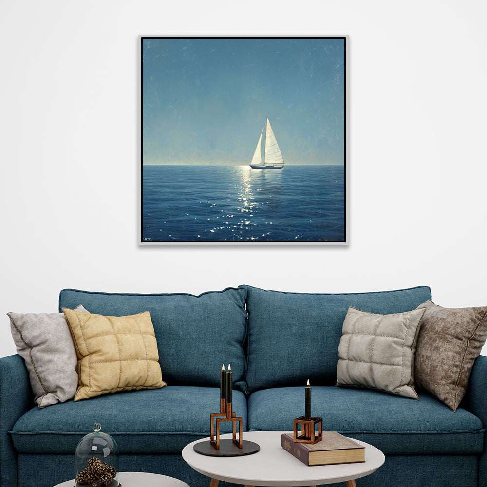 • Blue Ocean White Sailing Boat Canvas Wall Art Painting