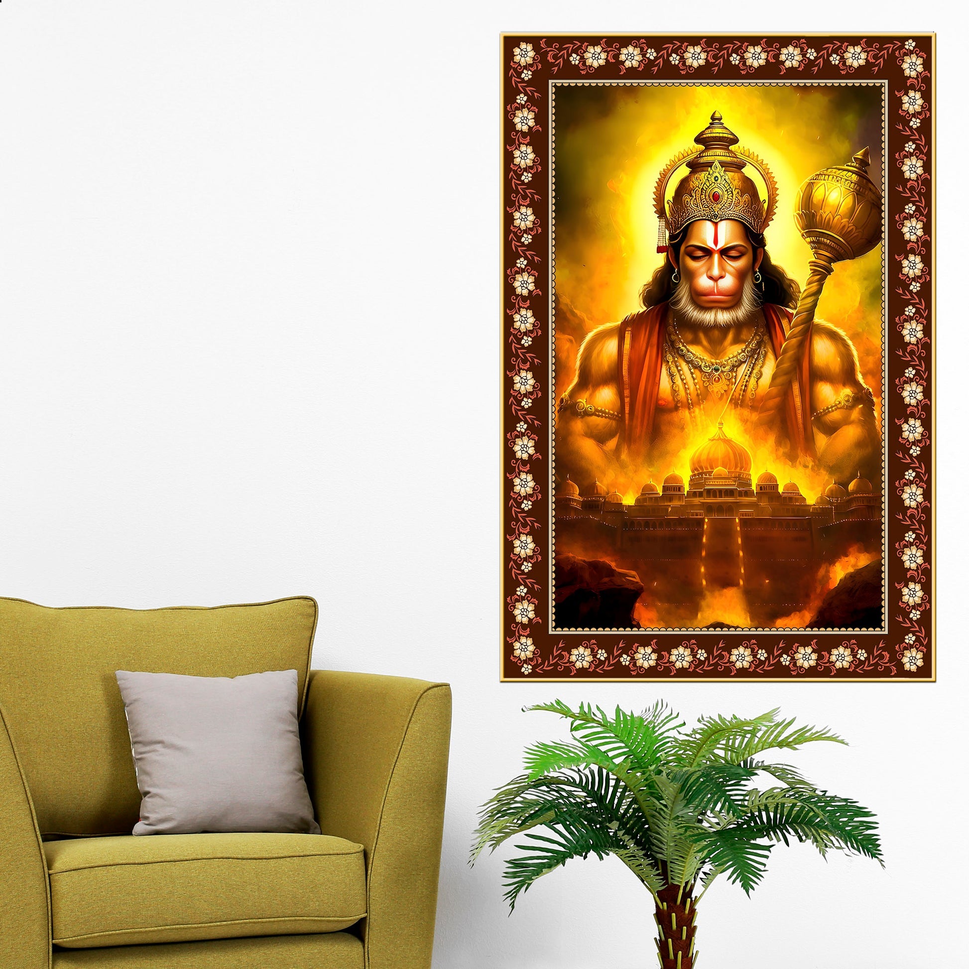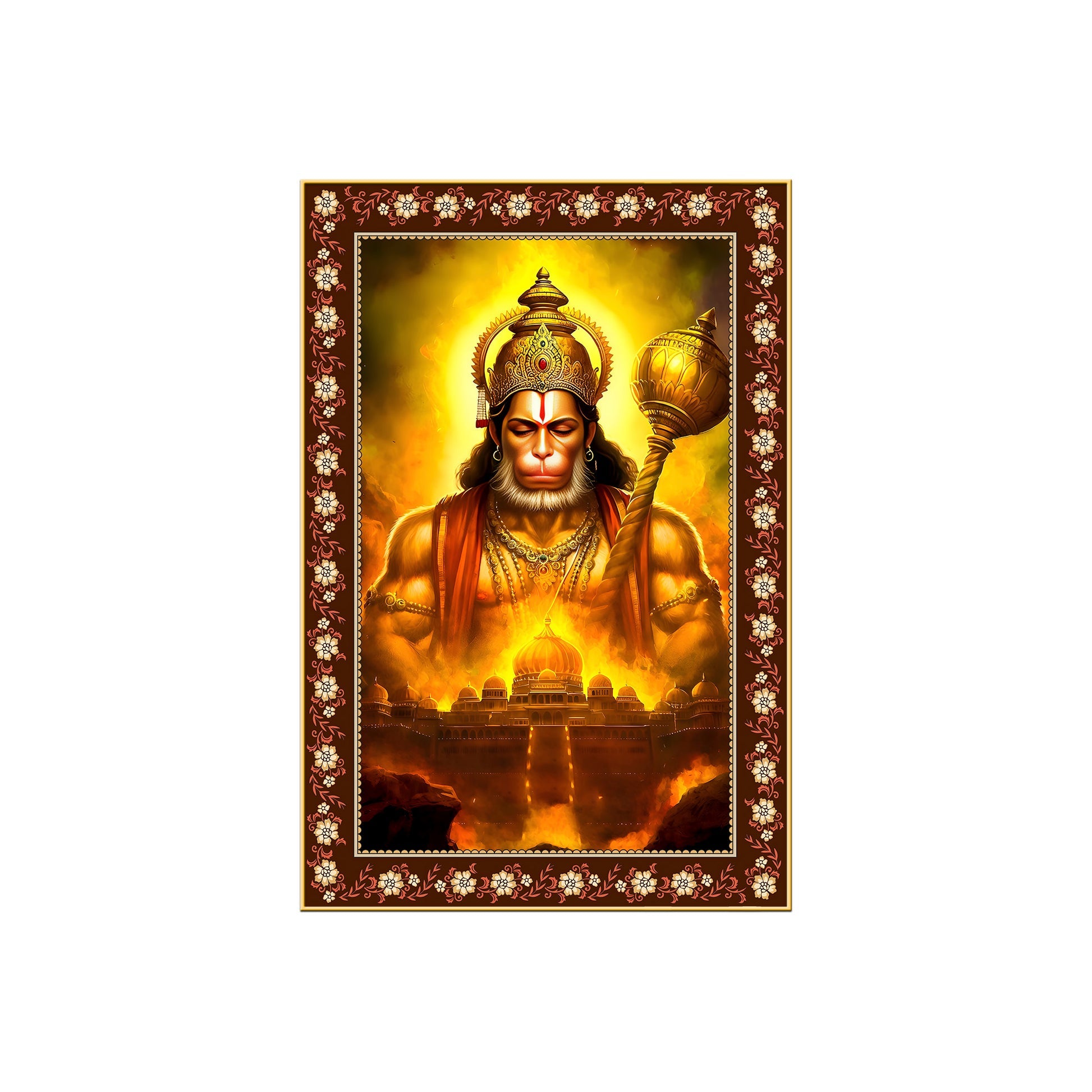 • Chiranjivi Hanuman Immortal One Floral Border Vertical Wall Painting
