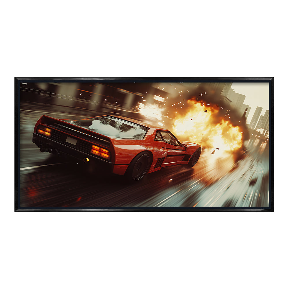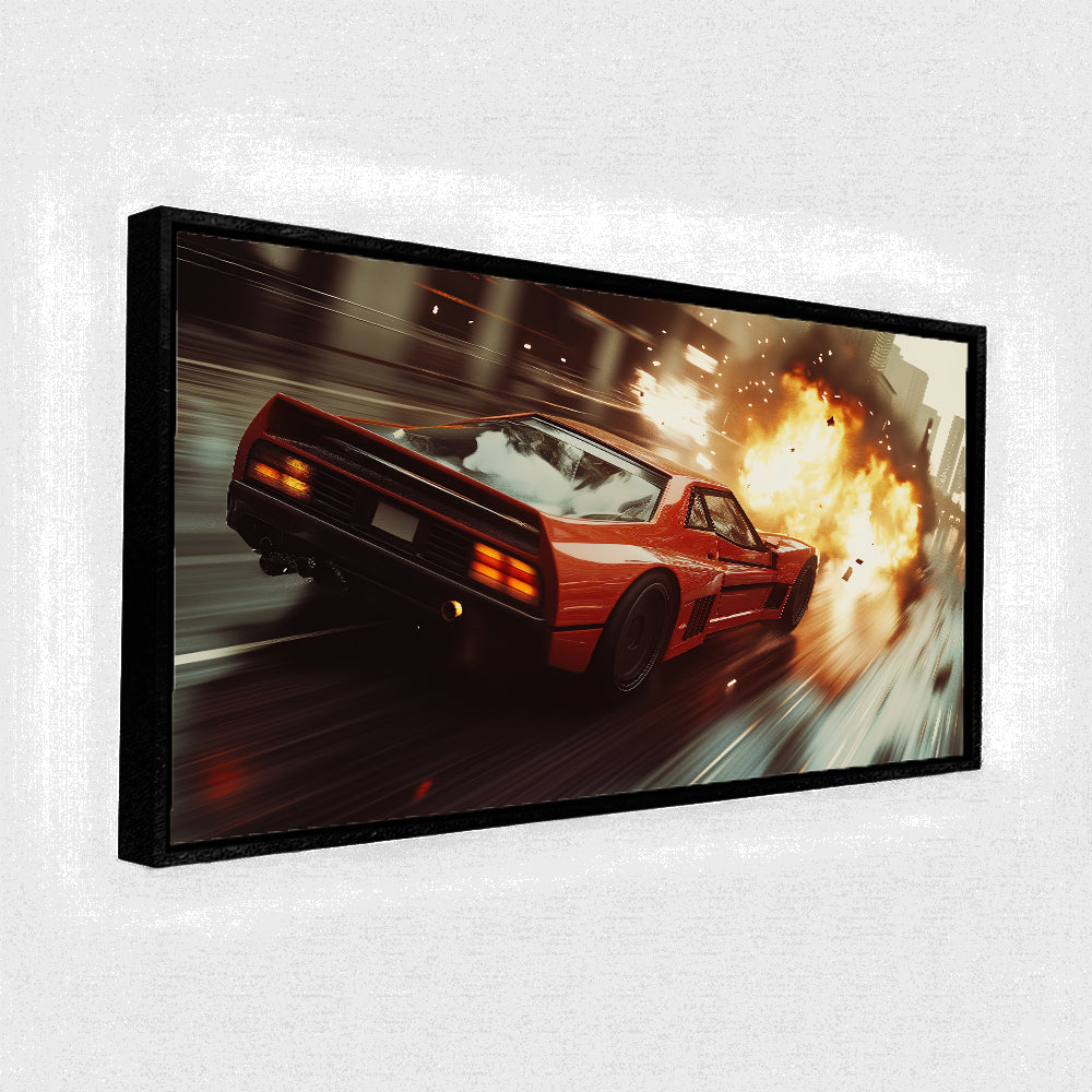 Cinematic Red Sports Car Racing Canvas Painting - Action Wall Art for Home and Office Décor