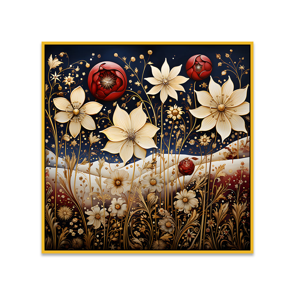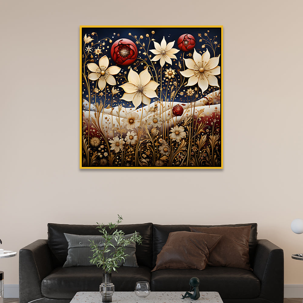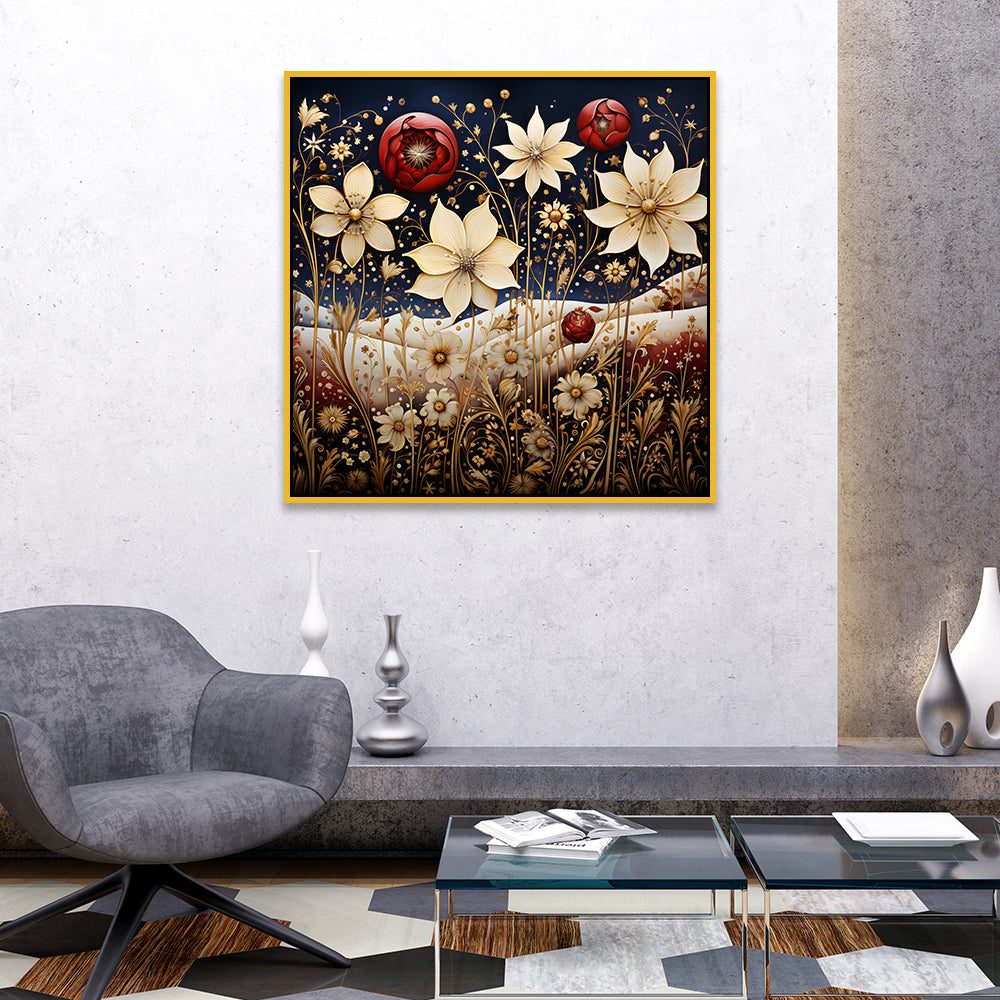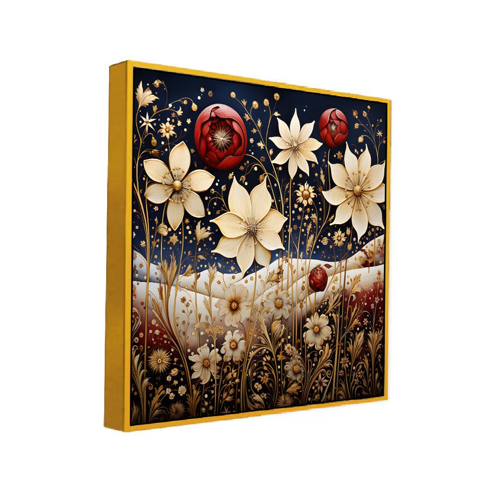 Colorful Abstract Golden Floral Canvas Wall Painting