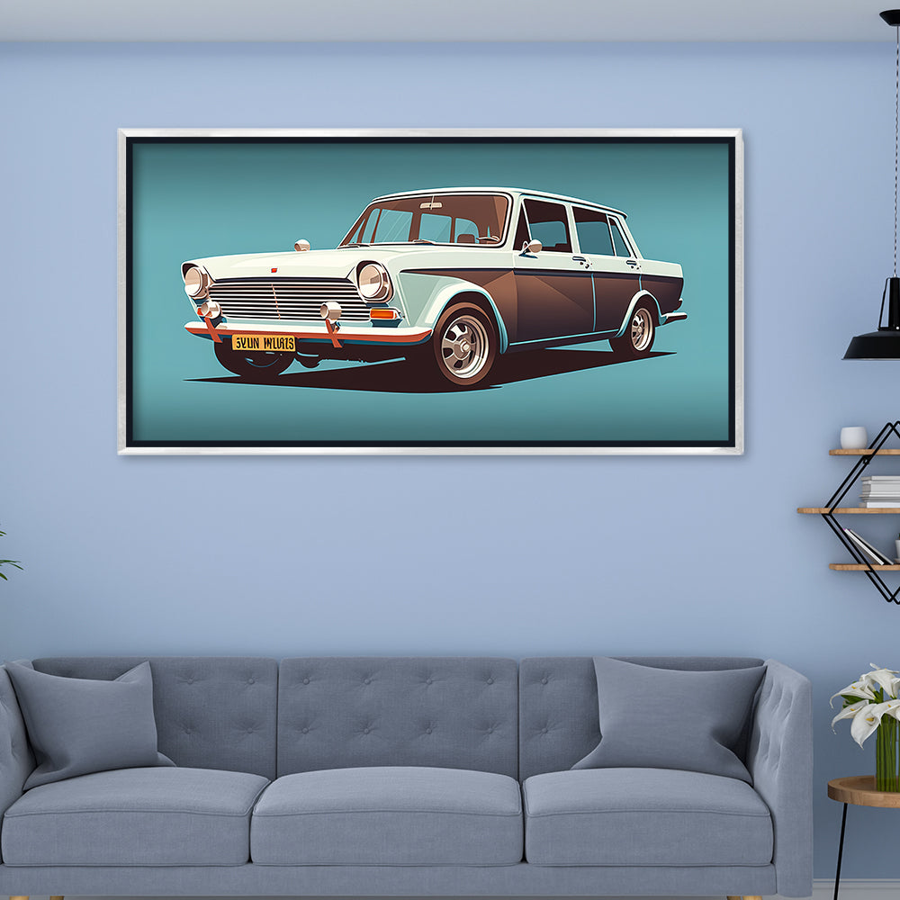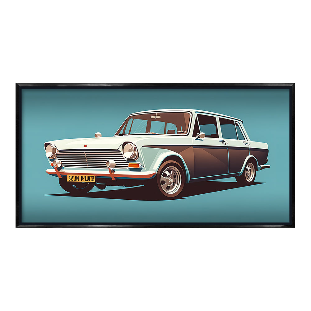 • Cruising Style: Nostalgic Vintage Car Illustration – Gallery Grade Retro Wall Art