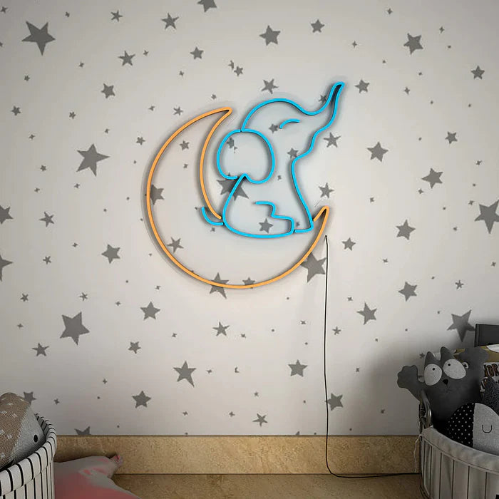 • Cute Elephant on Moon Neon LED Light