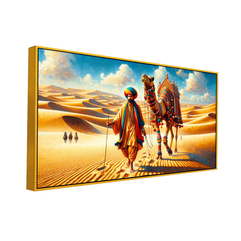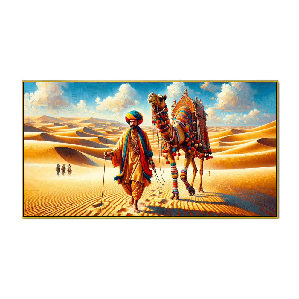 Desert Scene with Man and Camel in Colorful Attire Canvas Print Wall Painting