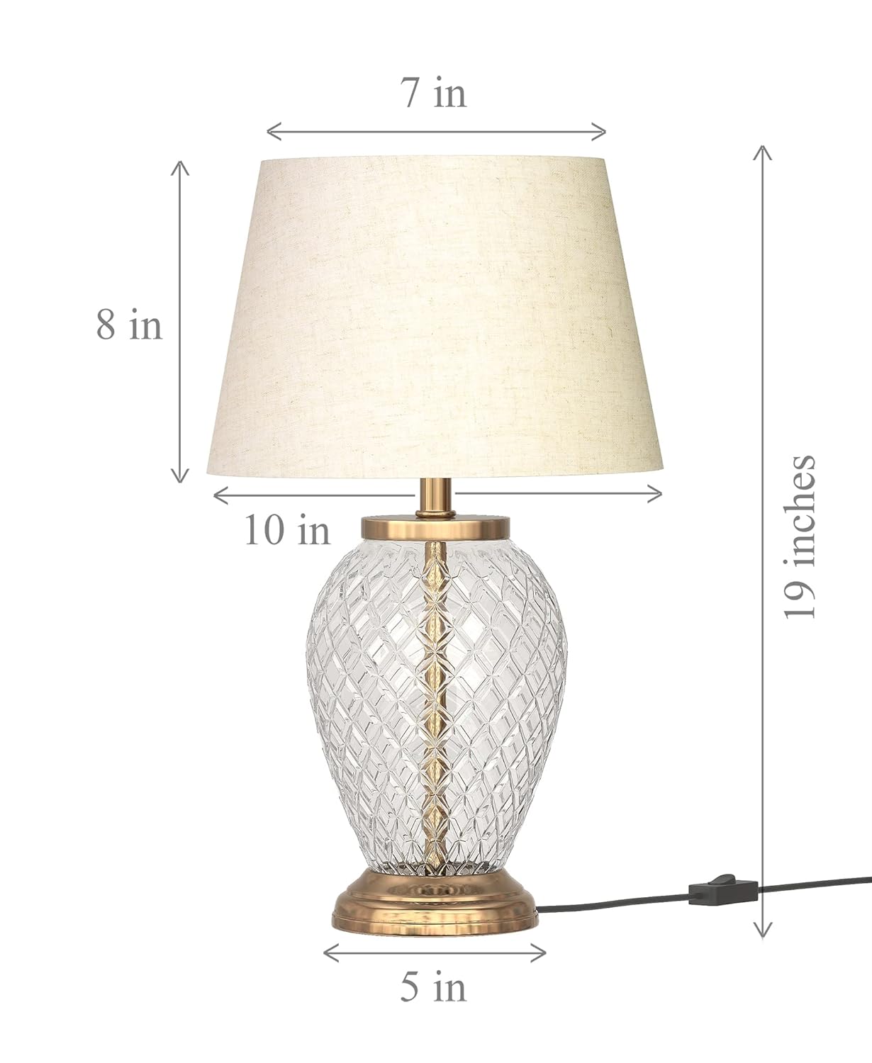 Diamond Cut Glass Table Lamp Brass Antique Finish 19 Inches Height With Off White 12 Inches Diameter Lampshade