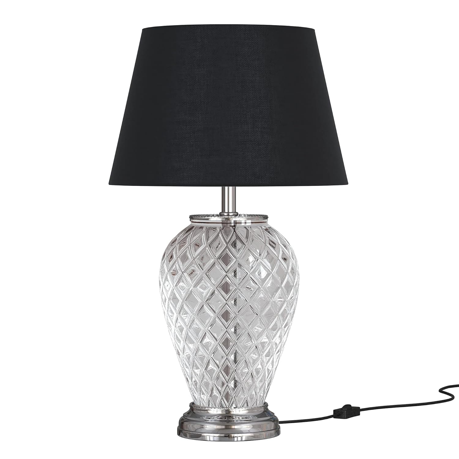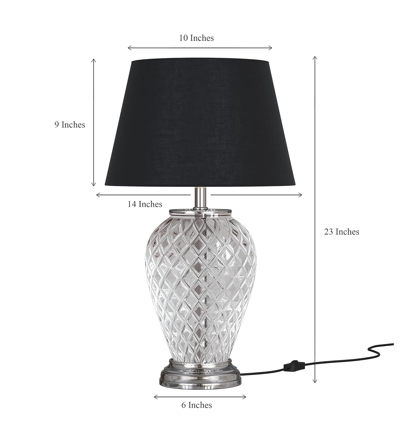 • Diamond Cut Glass Table Lamp Silver Finish 23 Inches Height With Black 14 Inches Diameter Lampshade