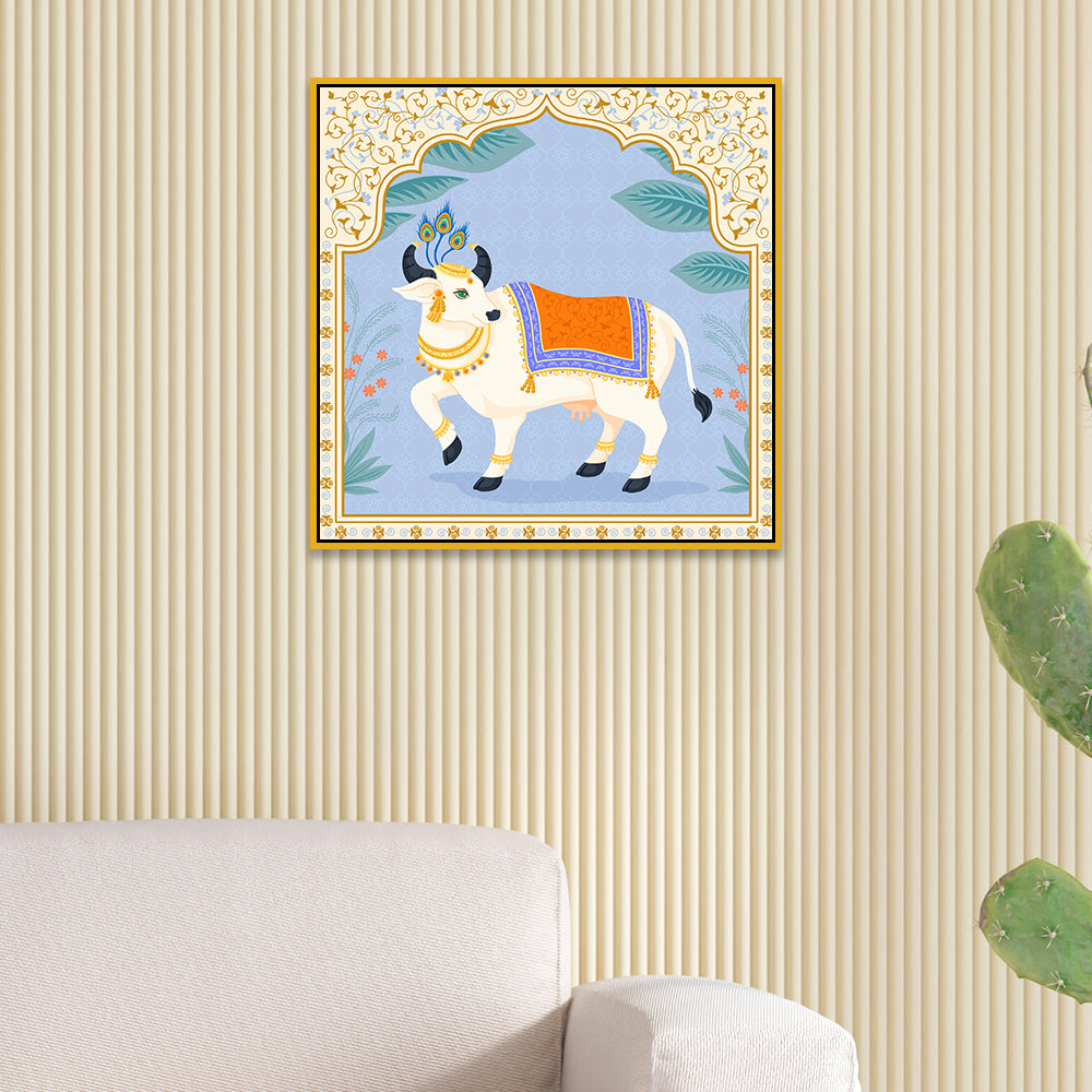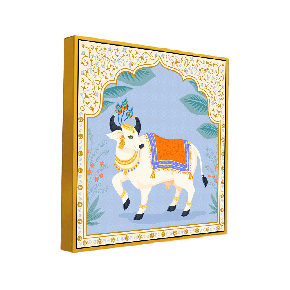 Divine Nandi Cow Traditional Indian Pichwai Style Canvas Wall Painting