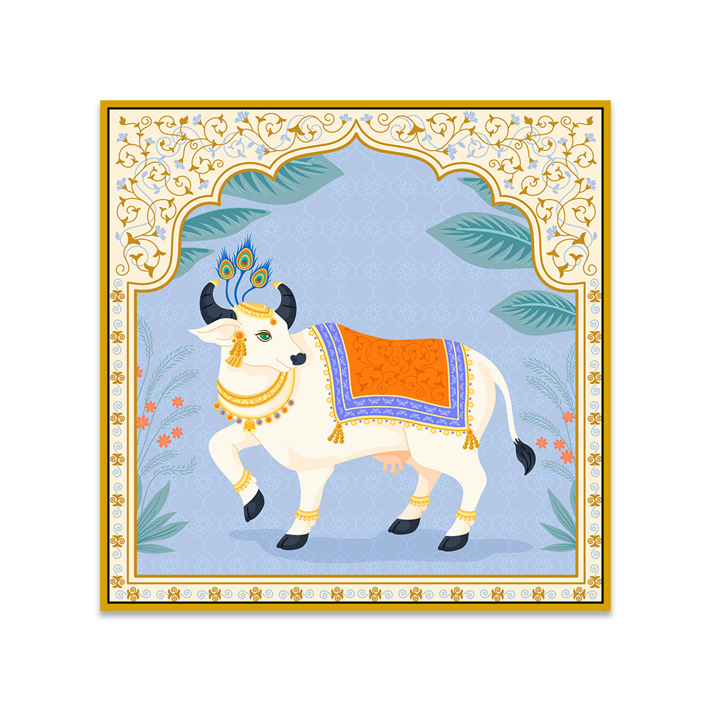 • Divine Nandi Cow Traditional Indian Pichwai Style Canvas Wall Painting