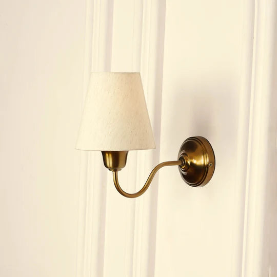 Divine Trends Brass Antique Finish Wall Lamp with Off White Lampshade