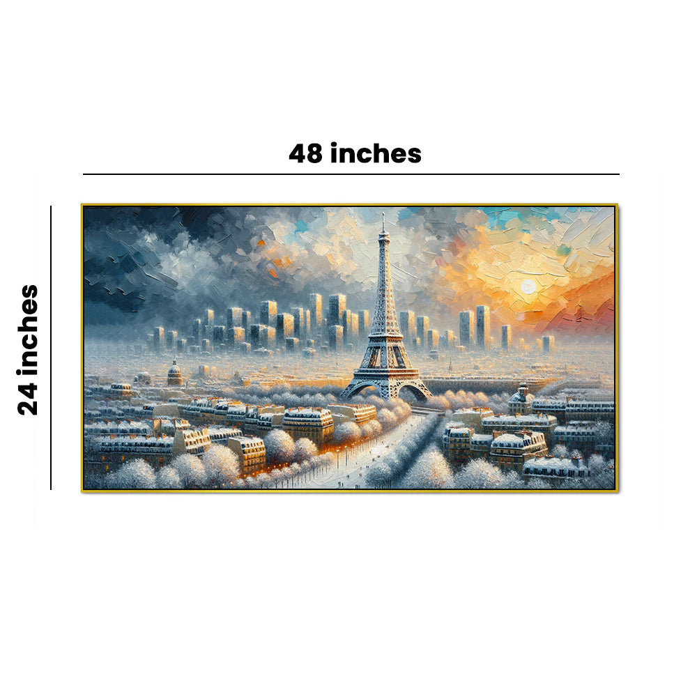 Eiffel Tower in Snowlight – Winter Sunset Over Snowbound Paris Canvas Print Wall Painting