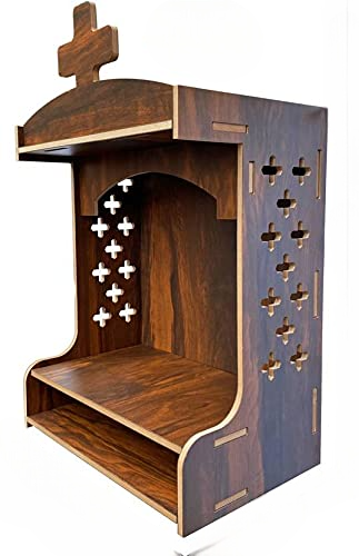 2-Tier Storage: Provides an upper platform for deity/cross display and a lower shelf for storing Bible, rosaries, candles, and prayer books.