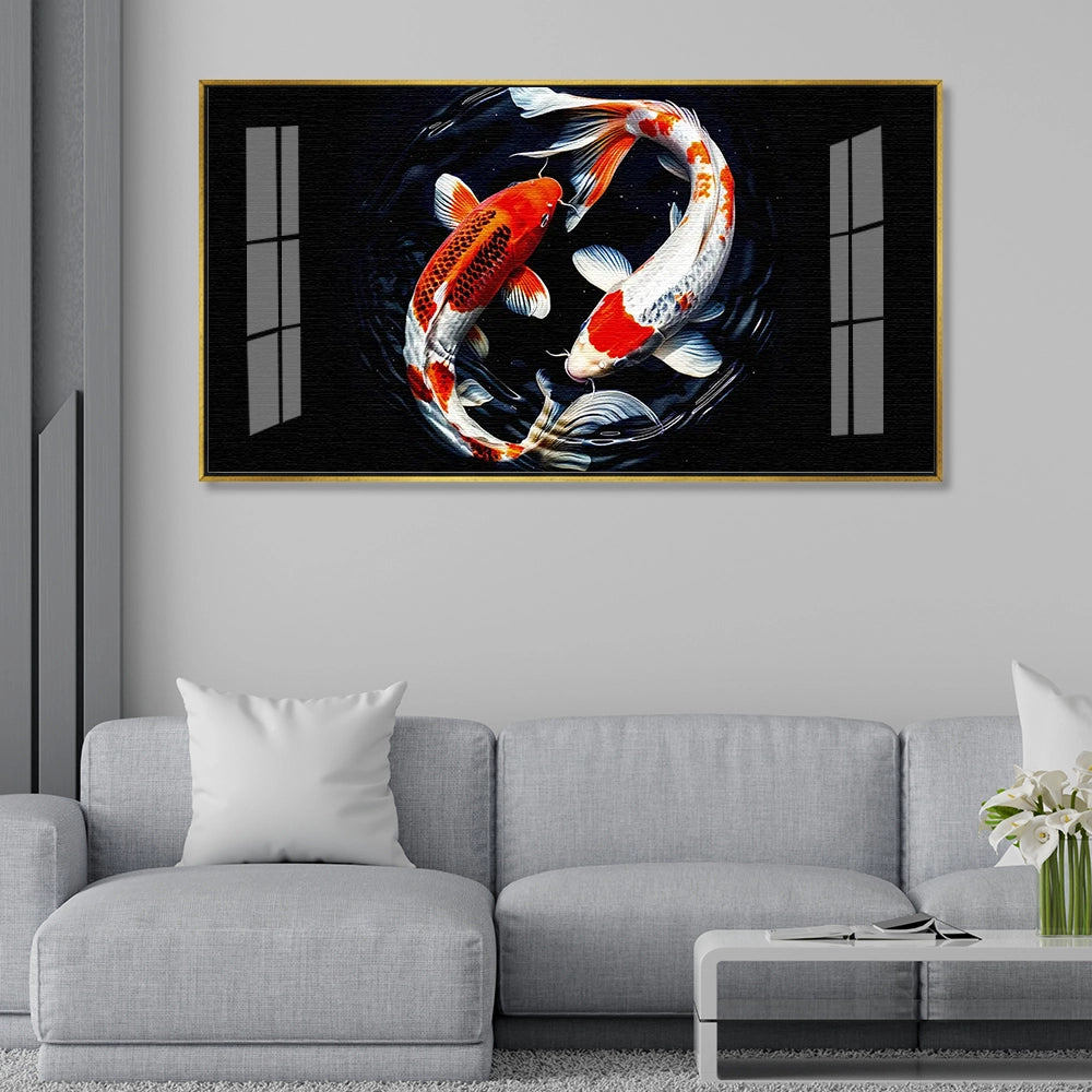 Fish Painting for Prosperity-Lucky Water Element Wall Art for Living Room or Office
