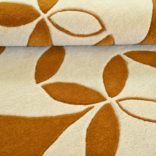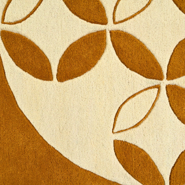 Florenta blends the symmetry of geometry with the softness of nature. Petal-like shapes form a rhythmic floral lattice, gracefully anchored by curved mustard accents on an ivory base. Hand-tufted in premium New Zealand wool, this rug brings balance, charm, and quiet sophistication to both classic and contemporary settings.