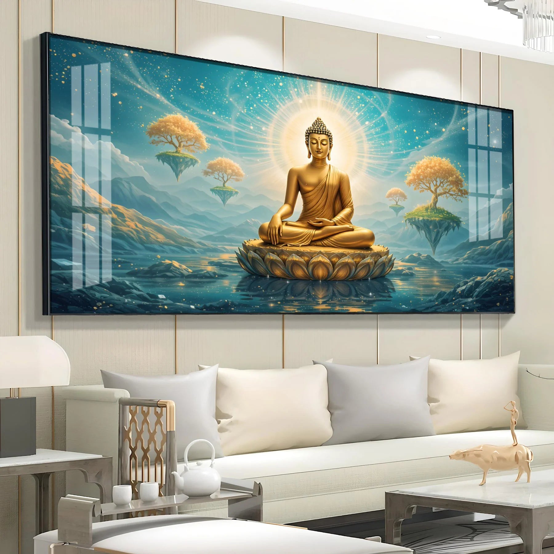 Golden Buddha with Floating Islets Acrylic Painting