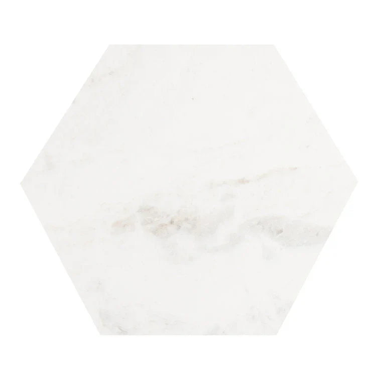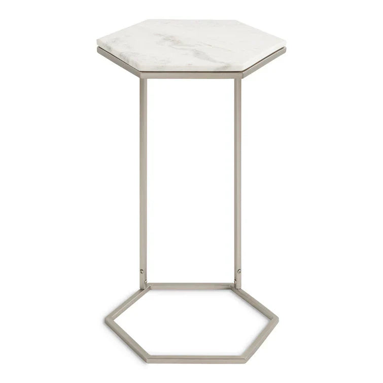 • Hexagon Shape Marble Top Silver Stand Side Table