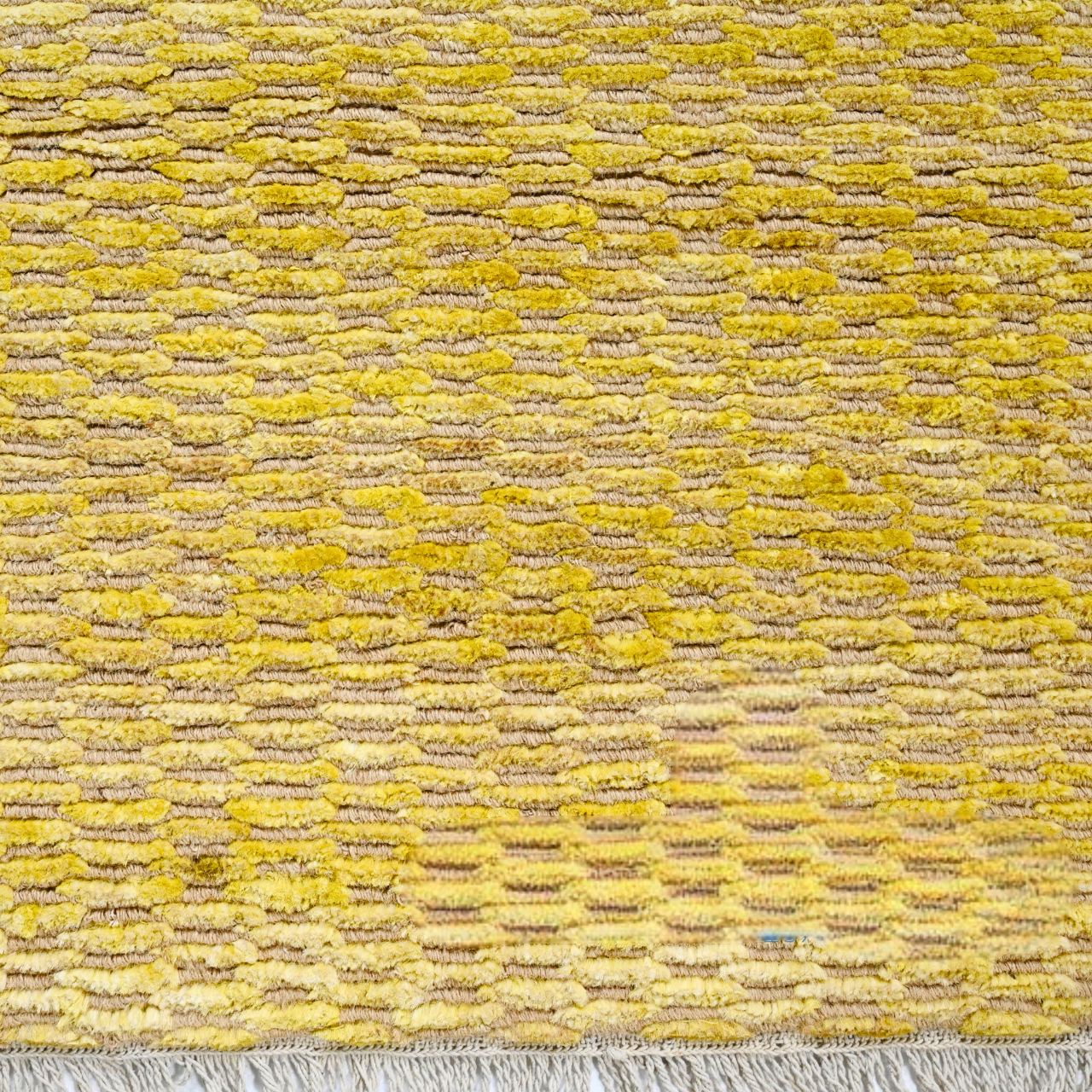 Handcrafted with a cheerful spirit, Jolly is an Indo-Tibetan flatweave rug made from 80% jute and 20% cotton. Its unique fish-scale texture is achieved through a combination of loops and cuts. Radiating sunny yellow tones, this rug brings warmth and vibrance to any space with an eco-friendly, natural feel.