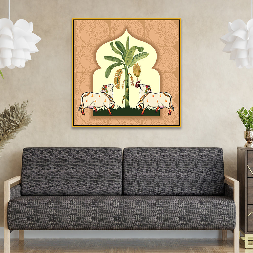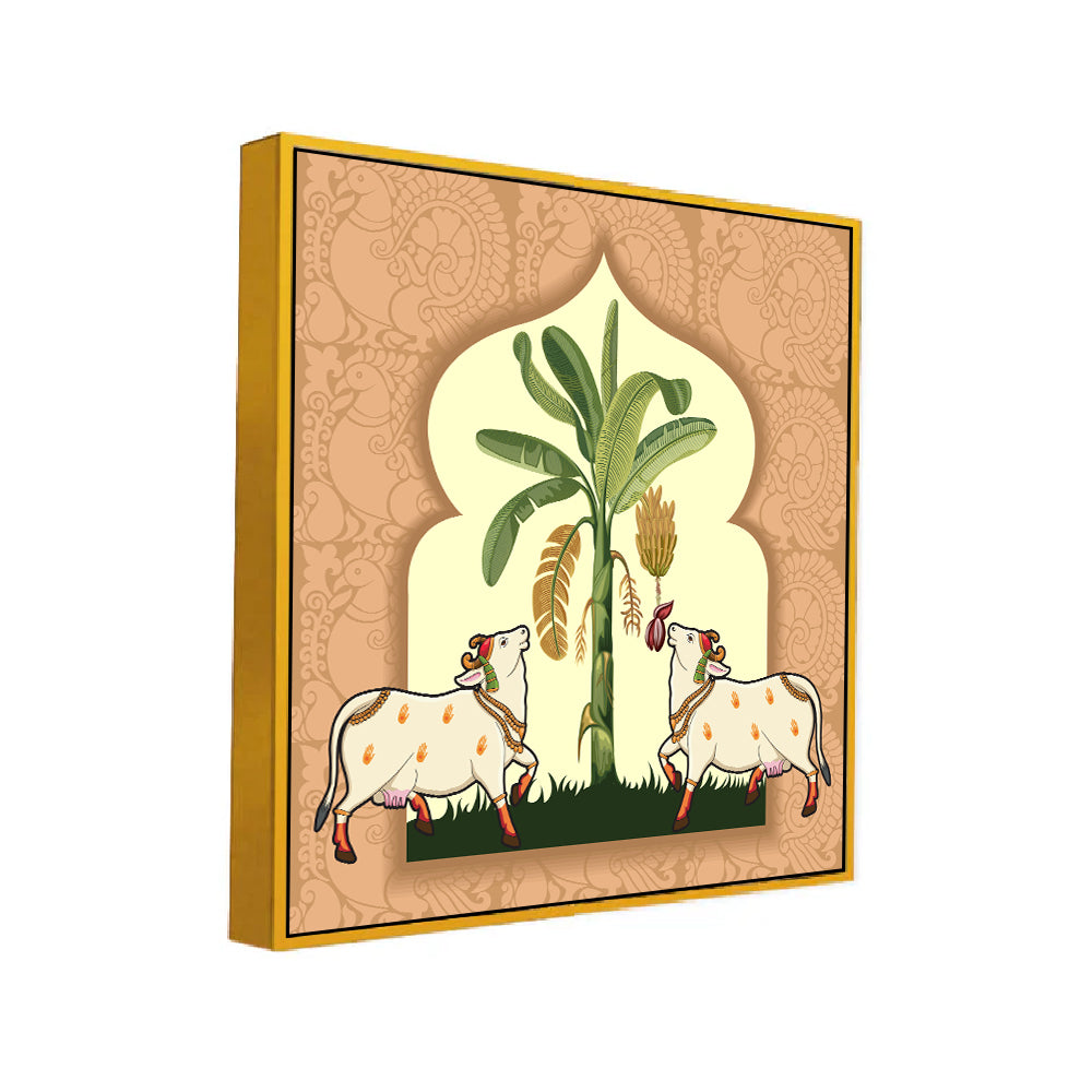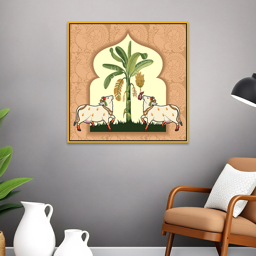 Kamdhenu Cow Vastu Prosperity Pichwai Cotton Canvas Wall Painting