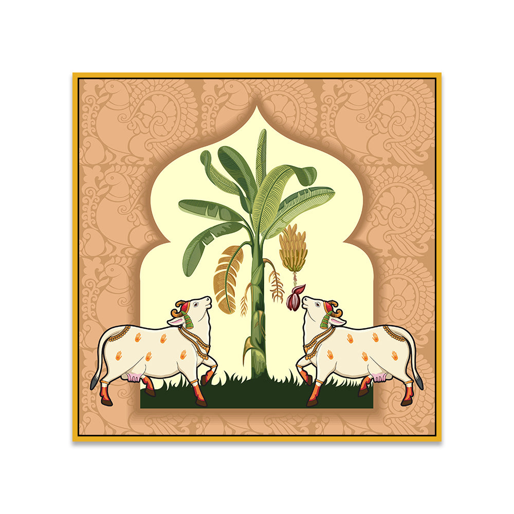 • Kamdhenu Cow Vastu Prosperity Pichwai Cotton Canvas Wall Painting