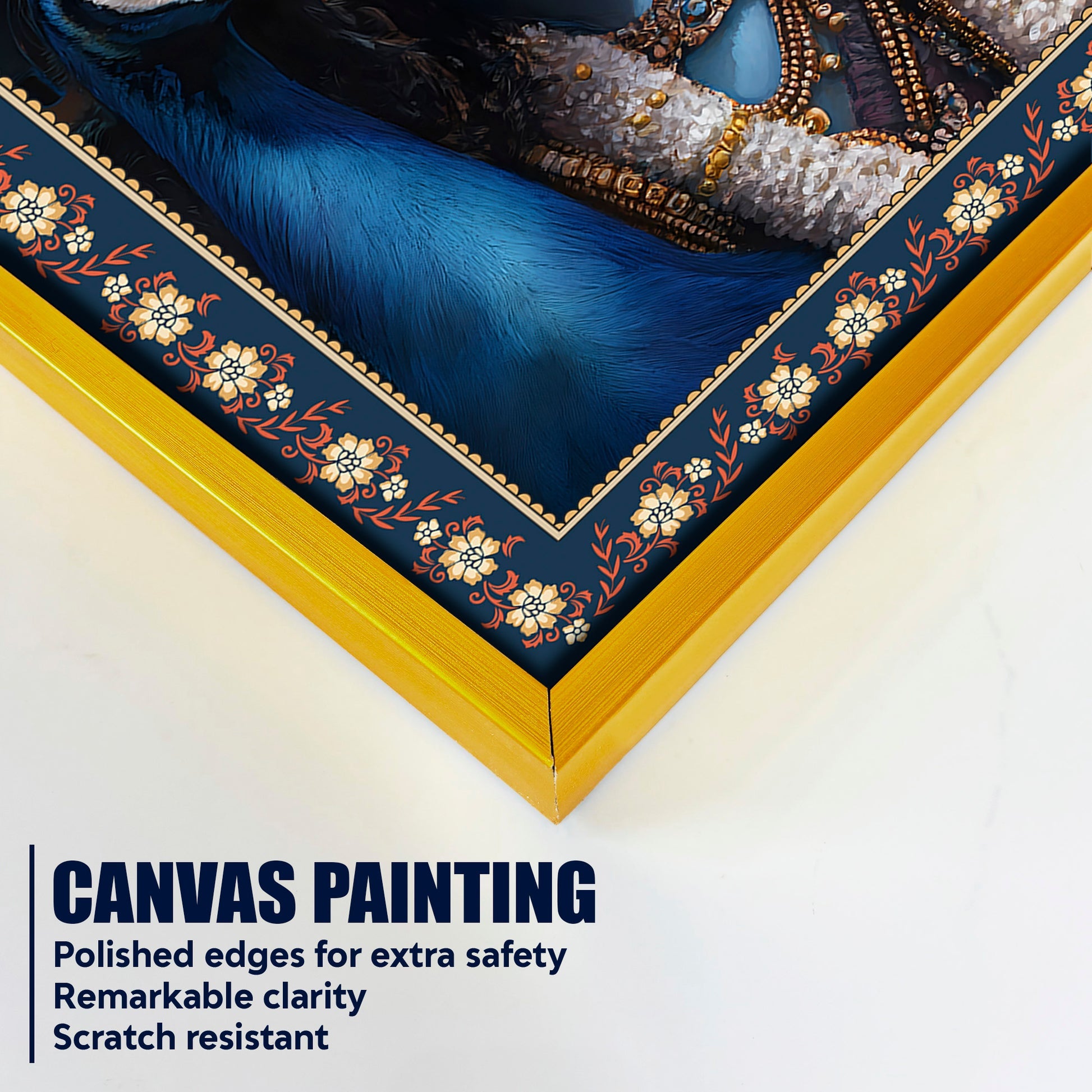 • Krishna Grace Feathered Friend Floral Border Vertical Wall Painting