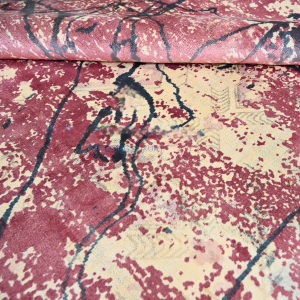 Lioren is a bold expression of abstract elegance, hand-loomed from soft viscose silk with a lustrous finish. Its marbled crimson tones, layered with inky black and ivory veining, evoke the intensity of painted canvas and the spontaneity of natural forms. With a fluid, modern texture and luxurious sheen, Lioren is perfect for curated interiors seeking an artistic, high-impact focal points