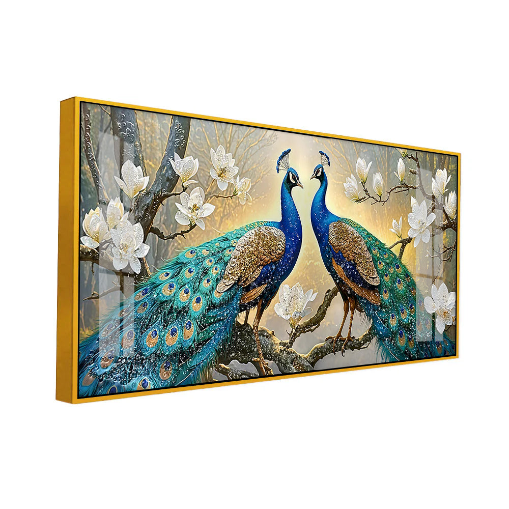 Luxury 3D Peacock Couple Wall Art - Premium Acrylic Glass Canvas painting