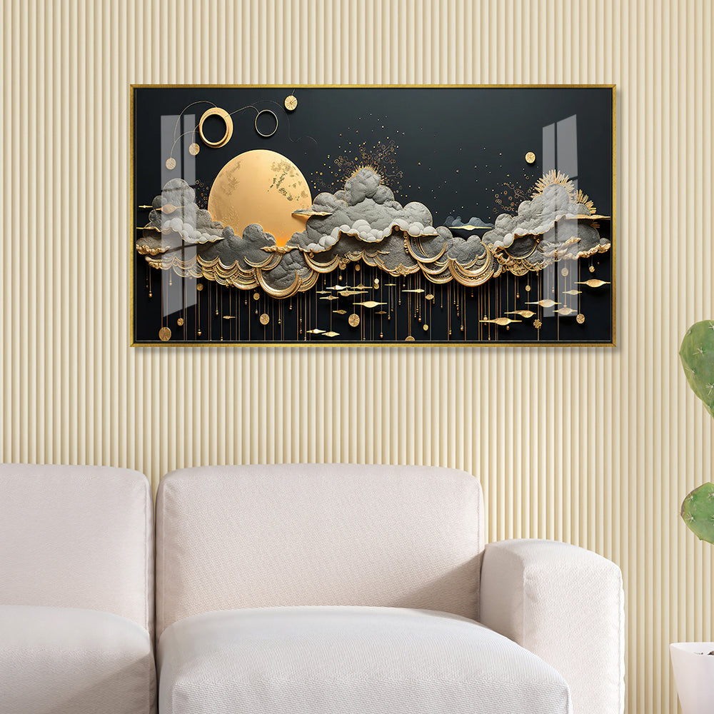 Abstract Gold and Grey Cloud Wall Decor, 3D Moon Canvas Painting,