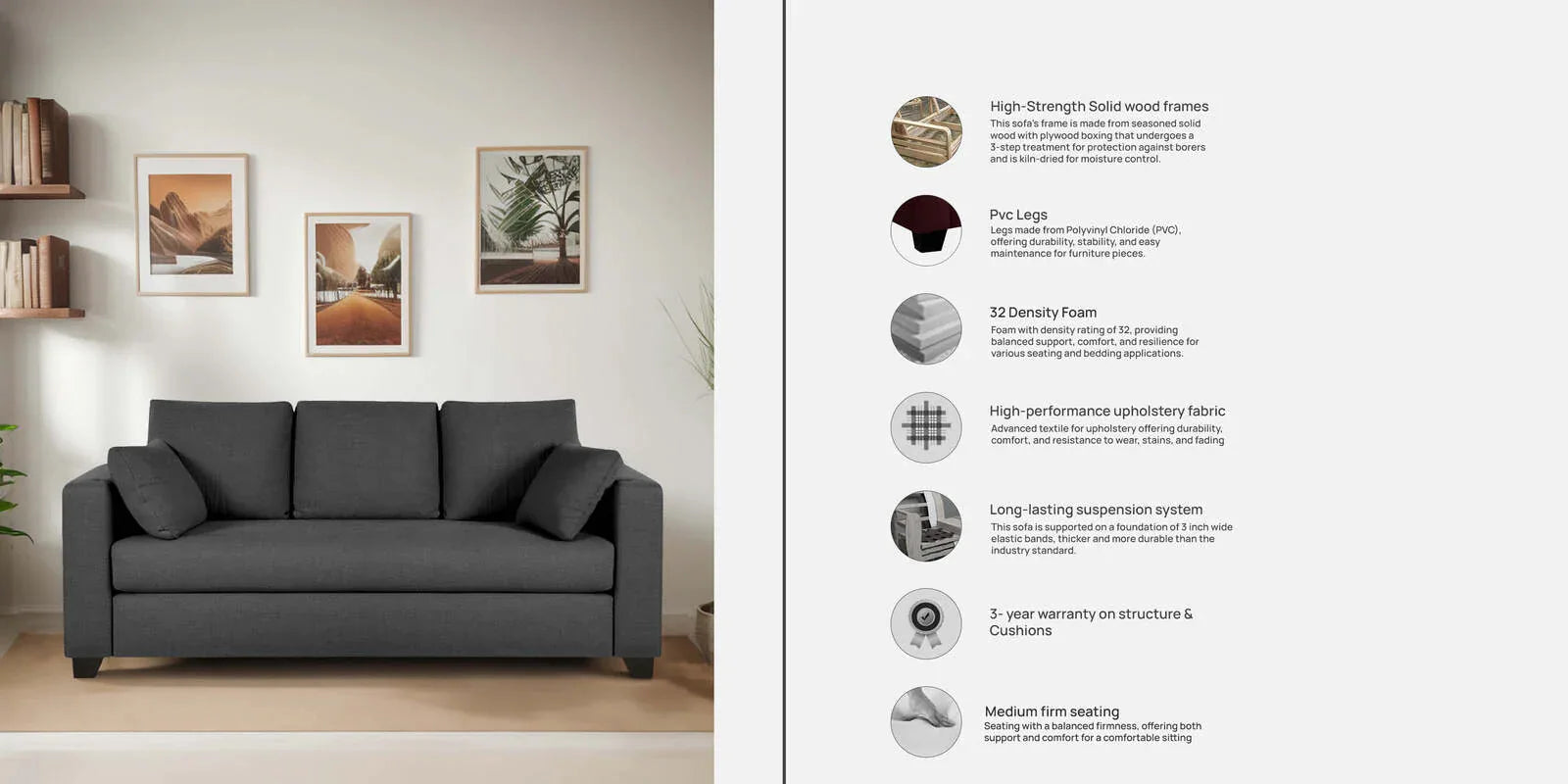 Size & Seating: Generous 70 Inch wide frame with a comfortable 60-inch seating area, perfect as a 3-seater couch.