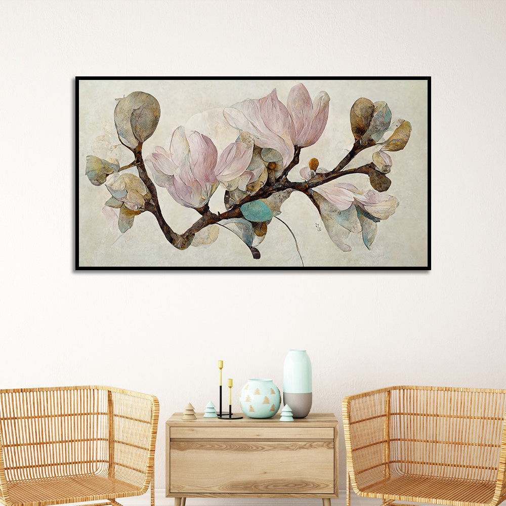 • Magnolia Branch with Blossoming Flower Canvas Wall Painting