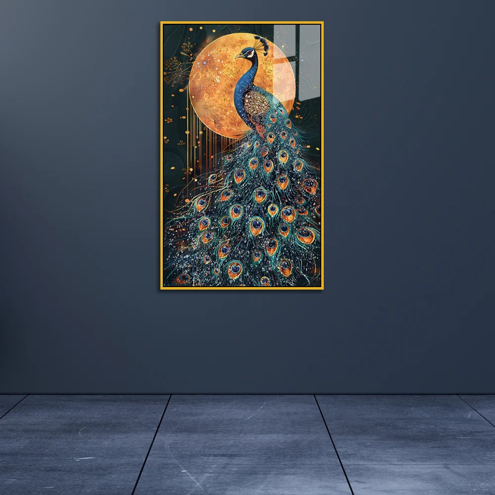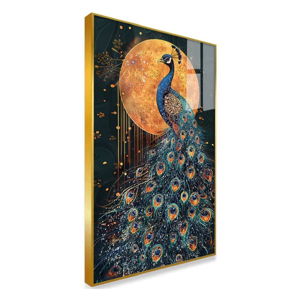 Majestic Peacock & Golden Moon Premium Acrylic Painting