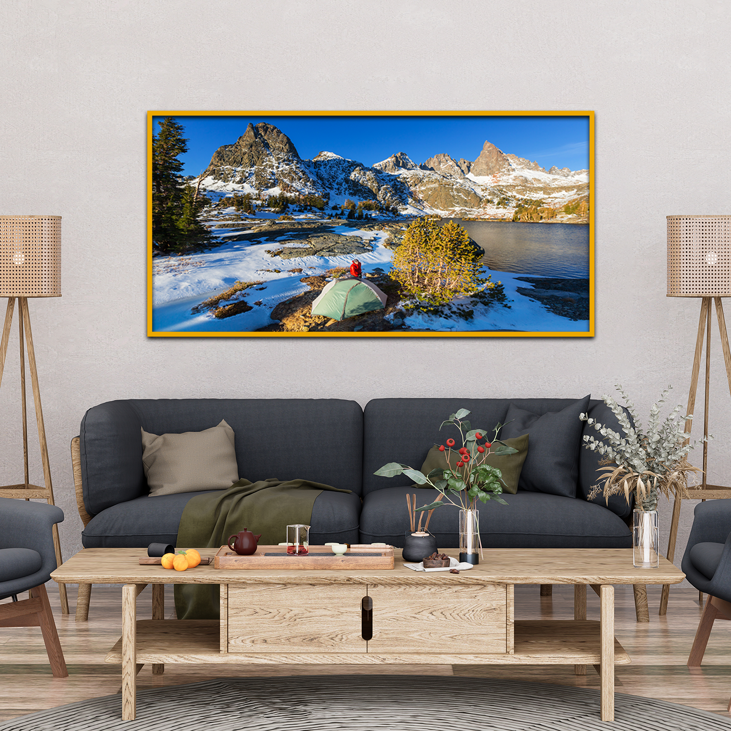 • Man With Hiking Equipment Walking Sierra Nevada Mountains Canvas Wall Paintings