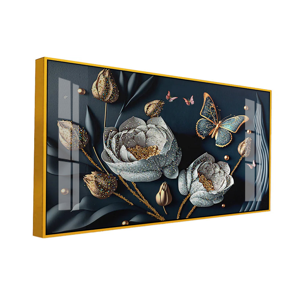 Midnight Bloom" Premium Acrylic Glass Art - 3D Butterfly Canvas Painting