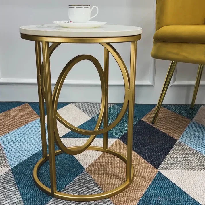 This Modern White Marble Round Side Table combines elegant design with durable materials. Its smooth white marble top offers a sleek, easy-to-clean surface perfect for any living space, while the golden metallic side frame adds a sophisticated touch and sturdy support. Ideal for enhancing your interior with a refined, contemporary accent that balances style and function seamlessly.