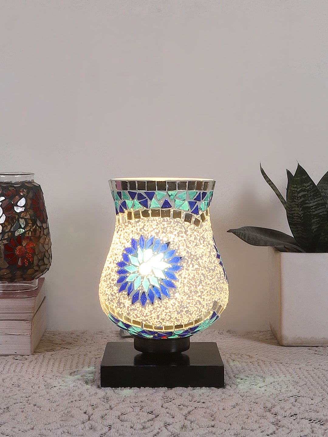Mosaic Glass Table Lamp with wood Square Black Base (NM01)