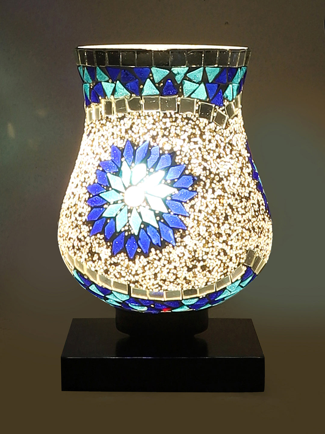 • Mosaic Glass Table Lamp with wood Square Black Base (NM01)