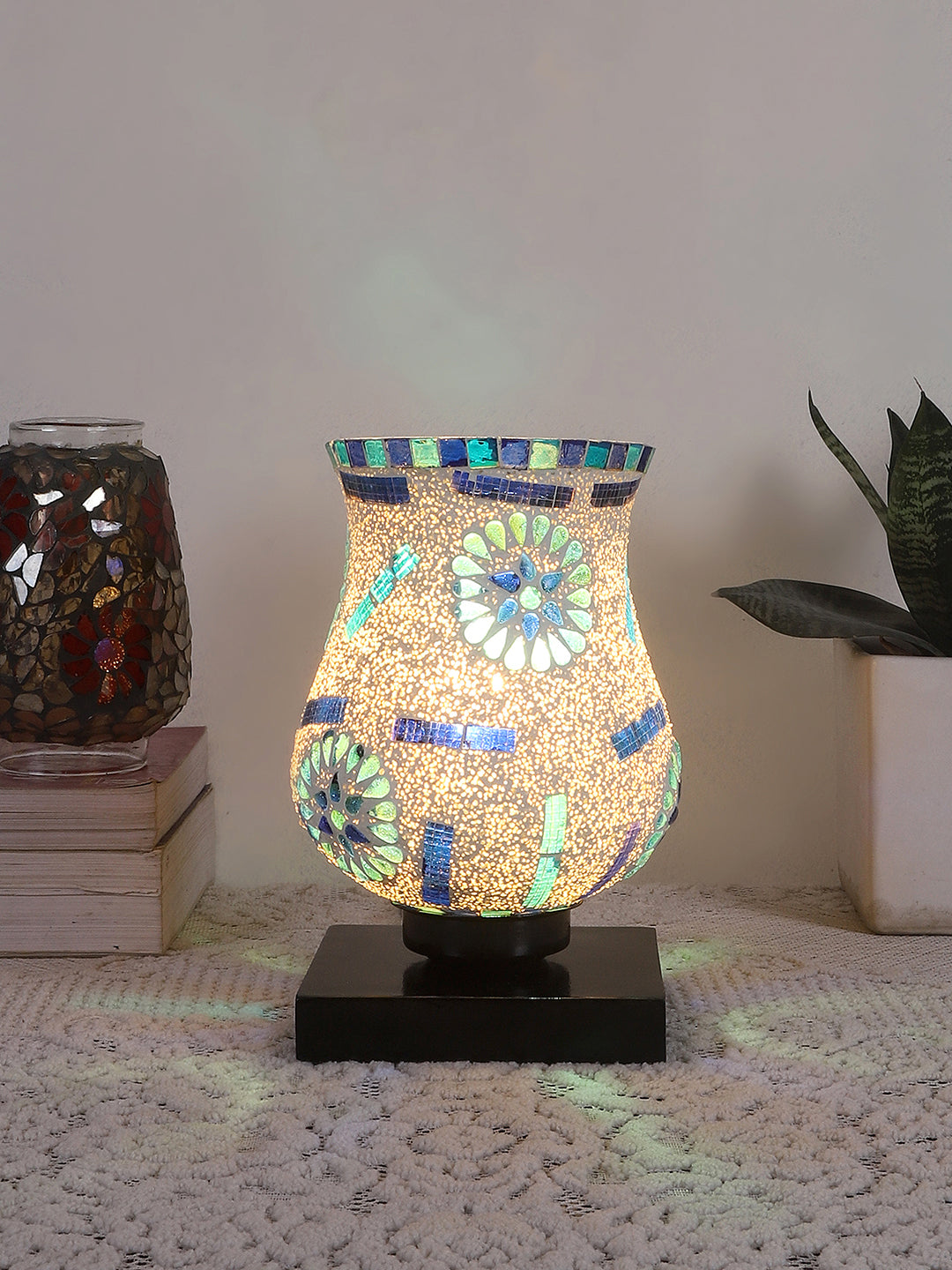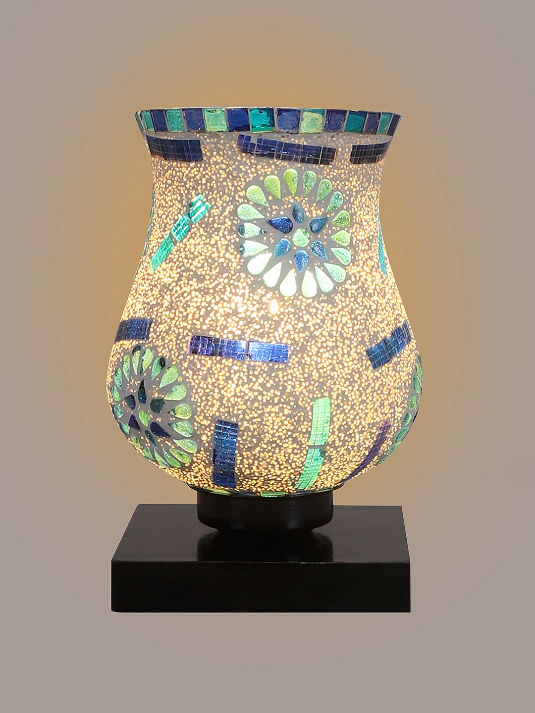 Mosaic Glass Table Lamp with wood Square Black Base (NM03)