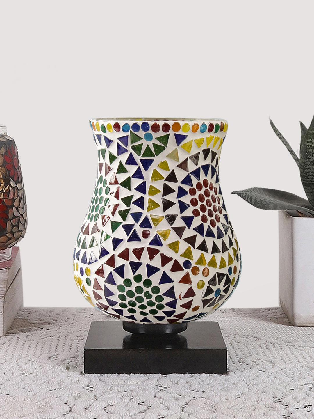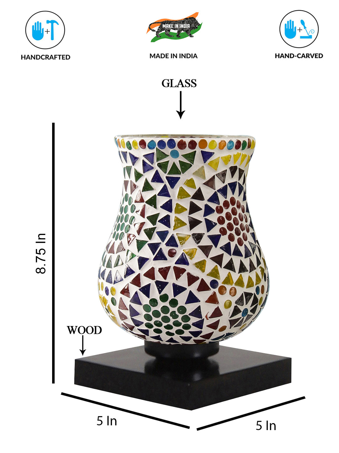 Mosaic Glass Table Lamp with wood Square Black Base (NM17)