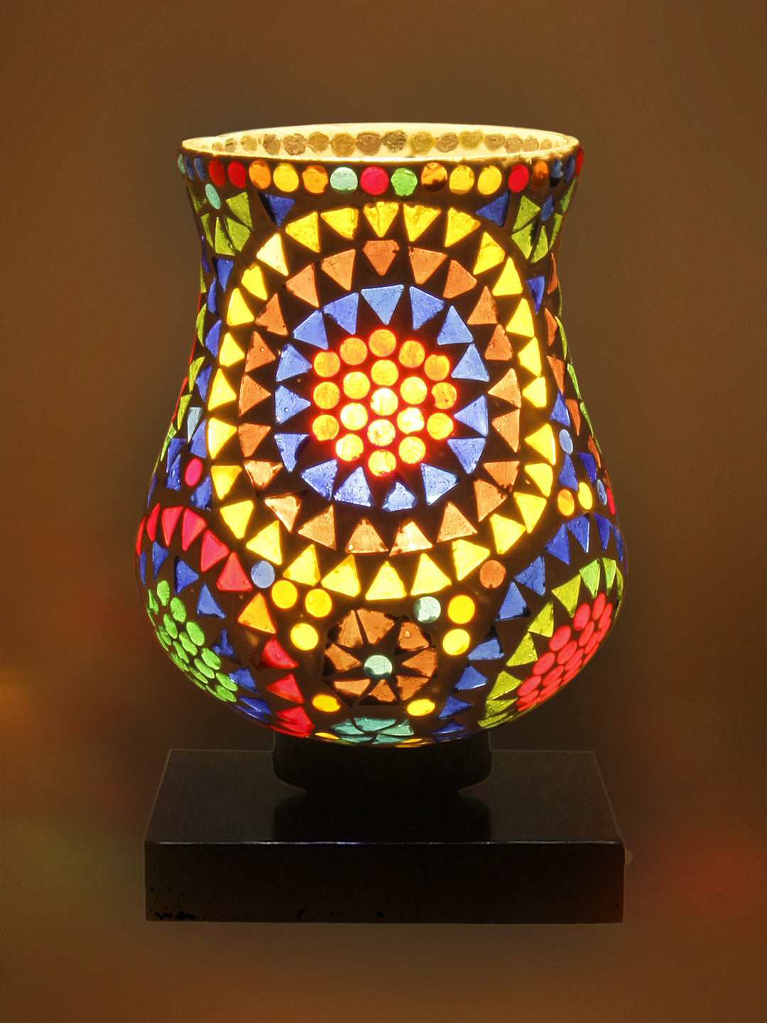 • Mosaic Glass Table Lamp with wood Square Black Base (NM17)