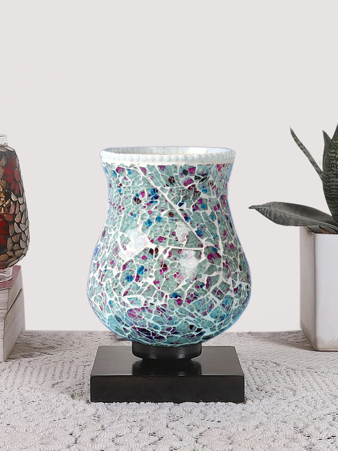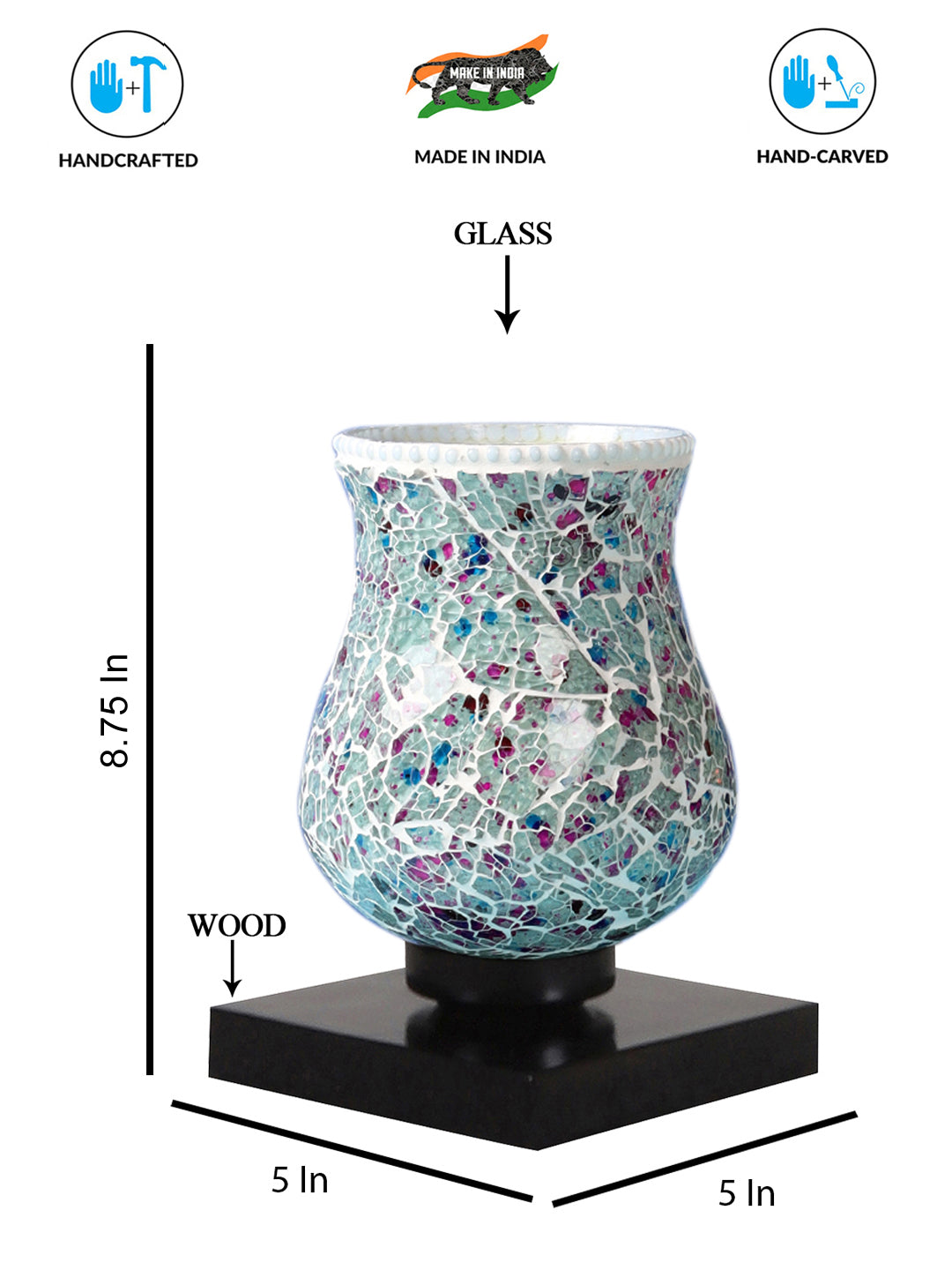 Mosaic Glass Table Lamp with wood Square Black Base (NM20)