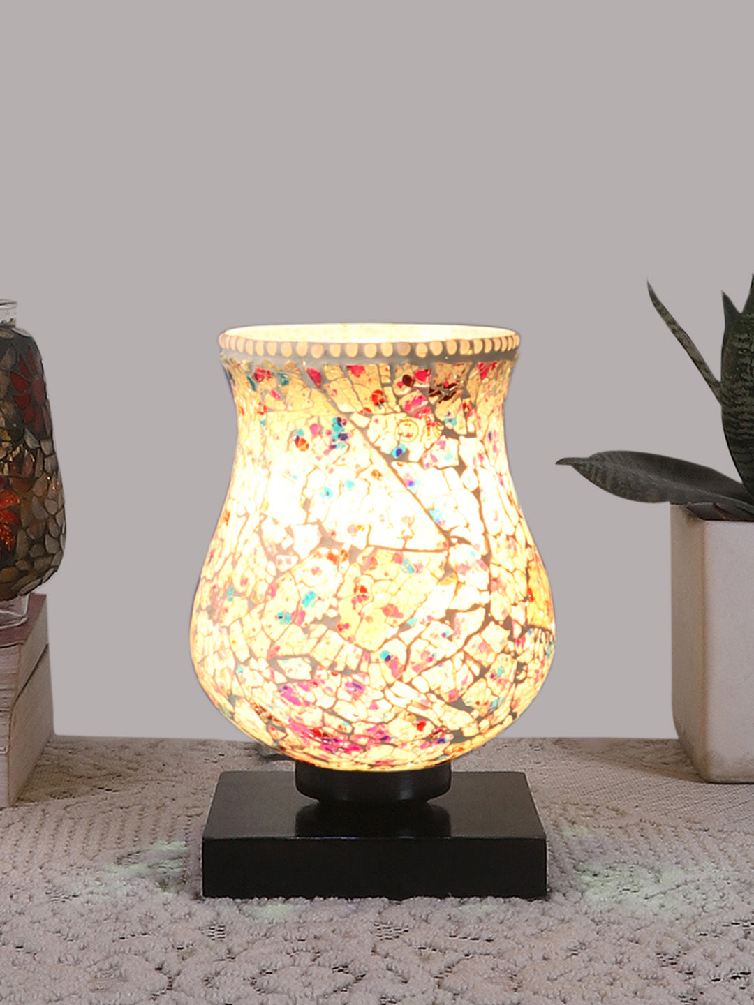 • Mosaic Glass Table Lamp with wood Square Black Base (NM20)