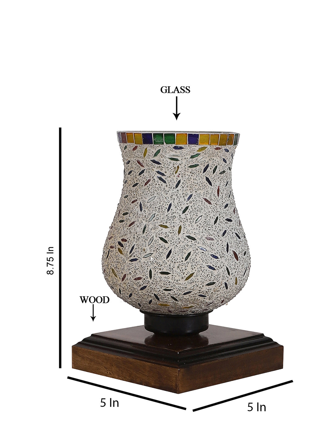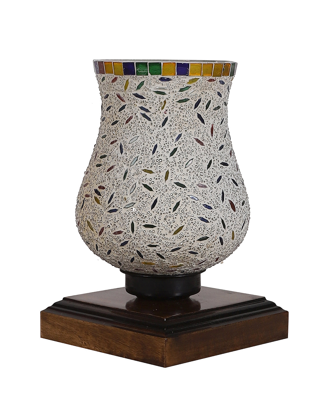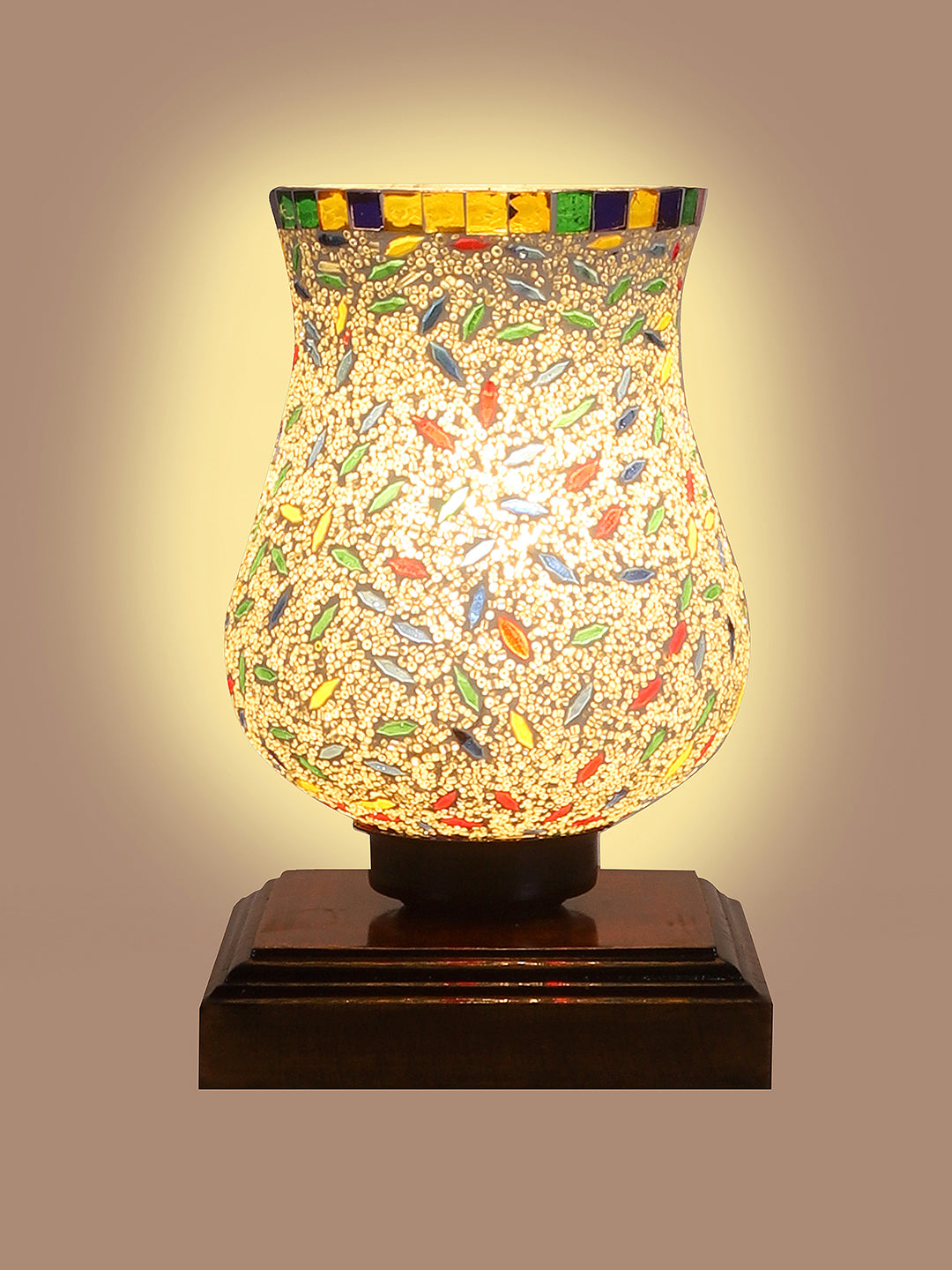 Mosaic Glass Table Lamp with wood Square Brown Base (NM24)