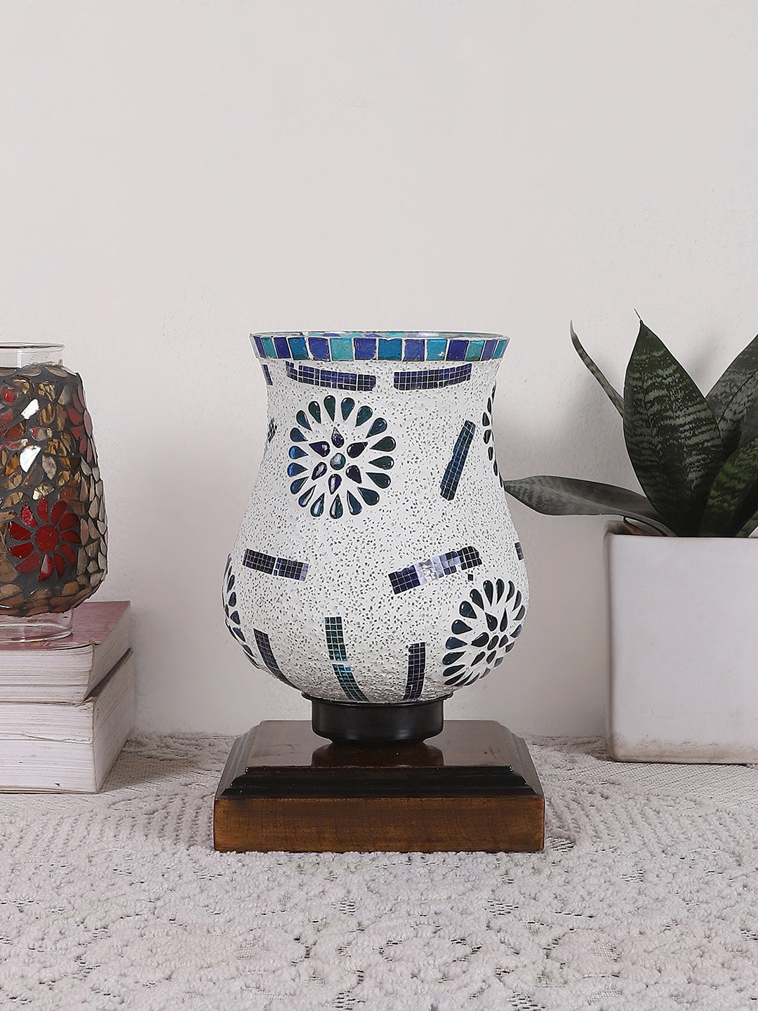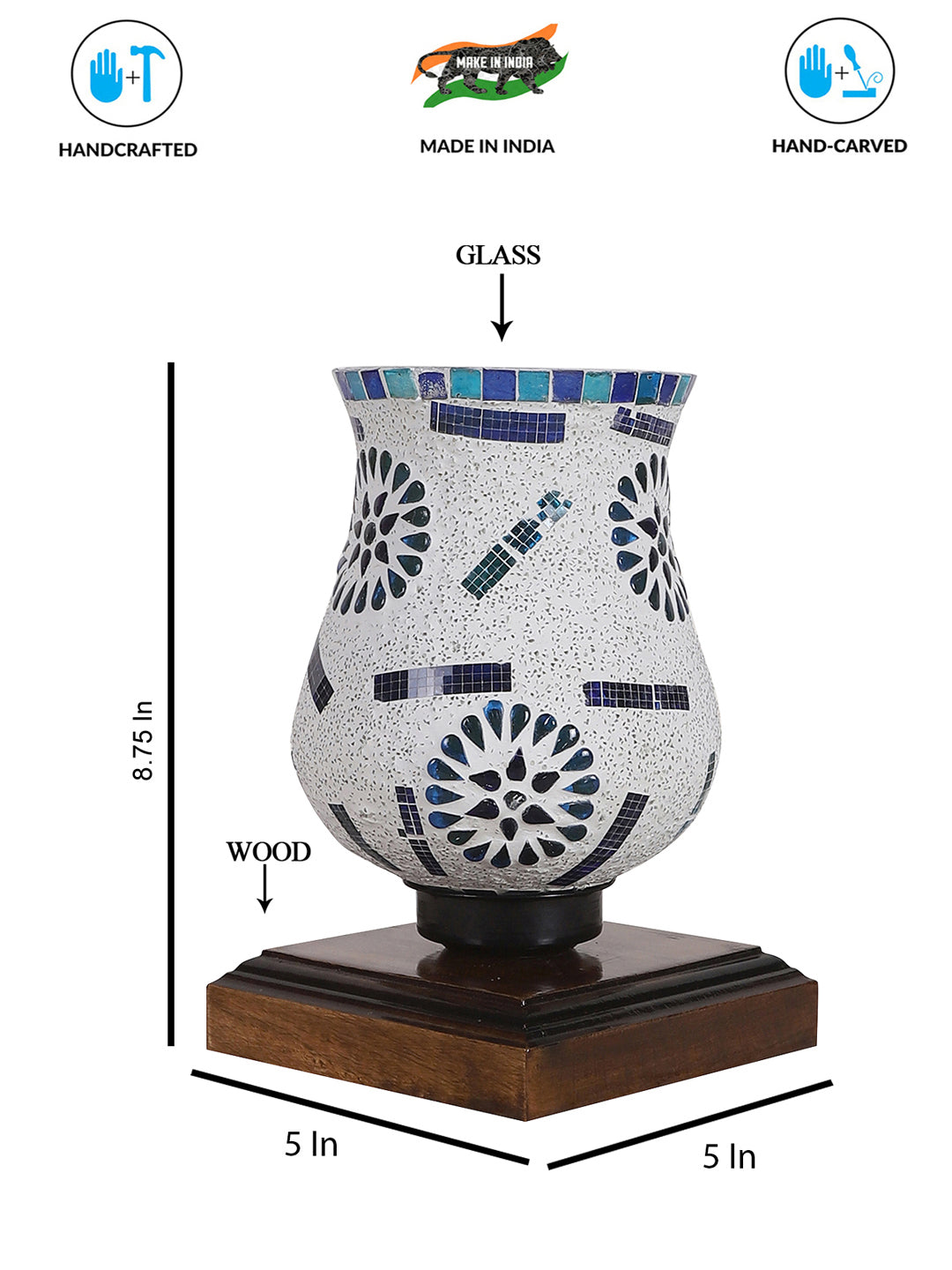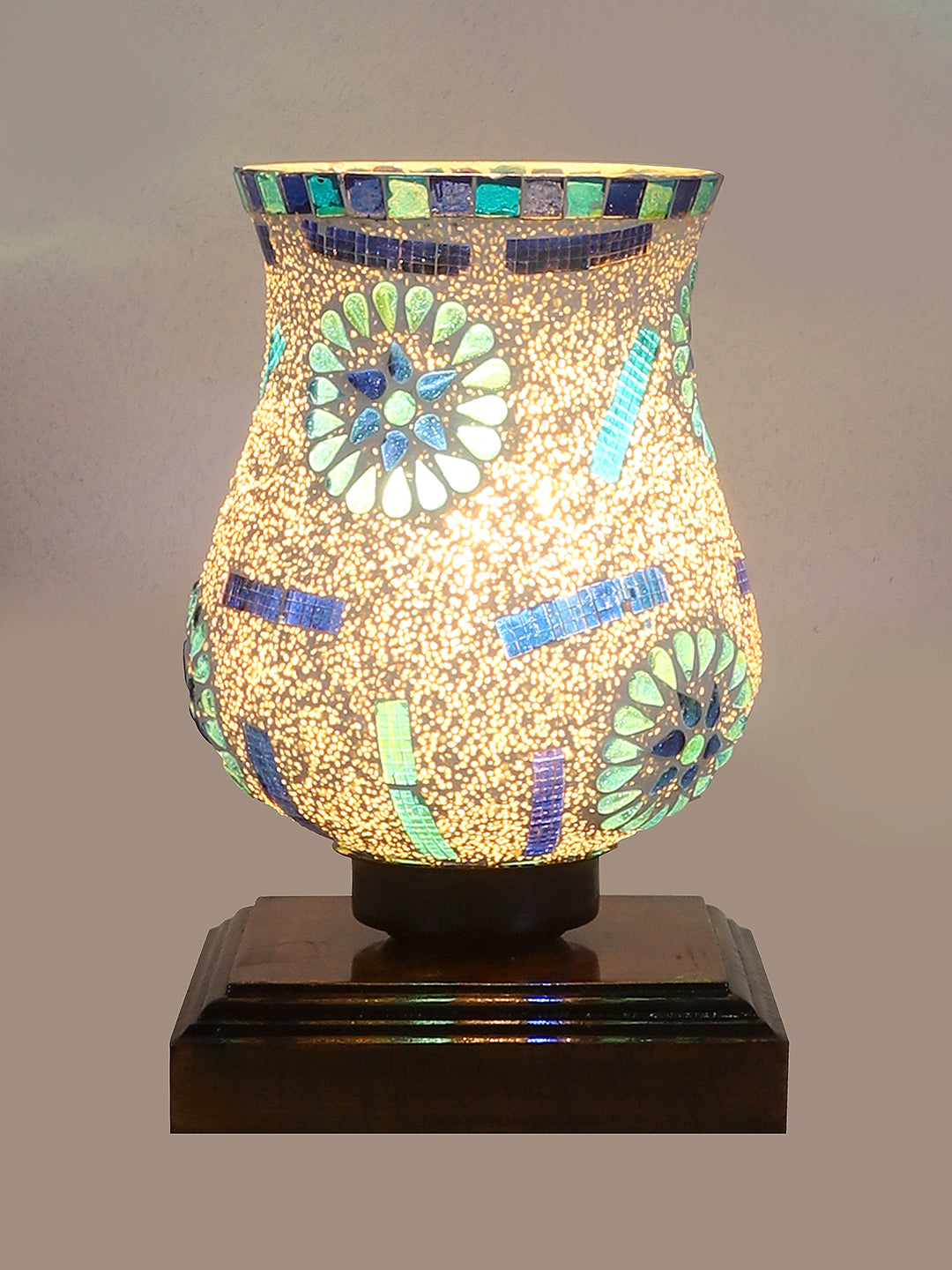 • Mosaic Glass Table Lamp with wood Square Brown Base (NM26)