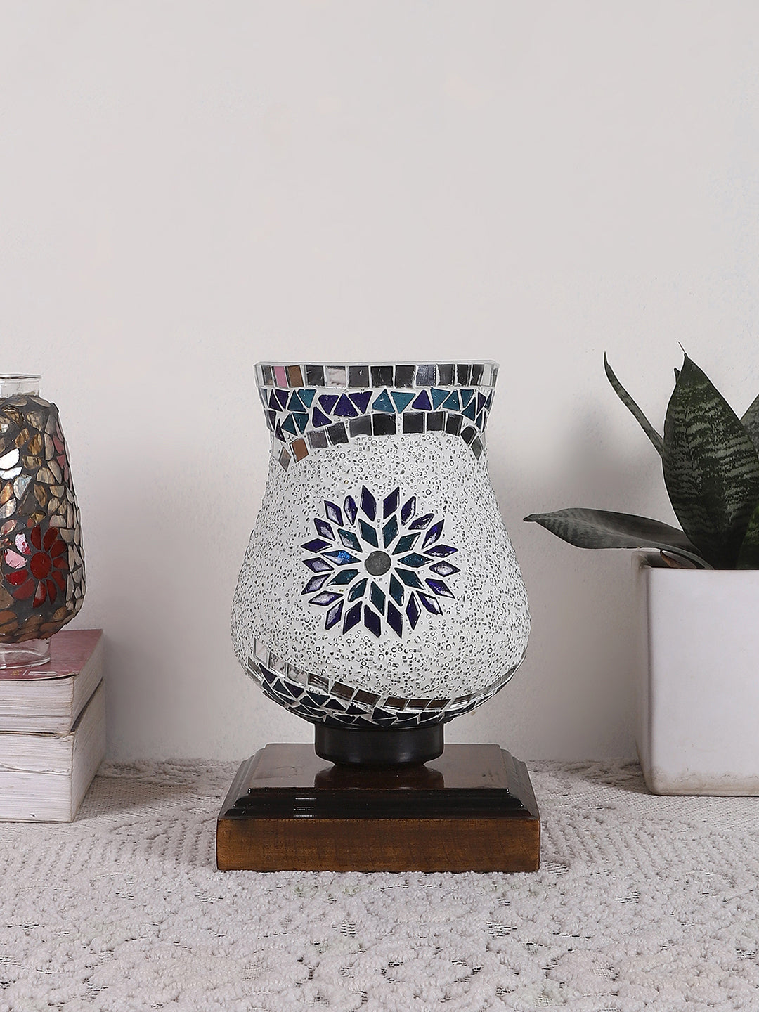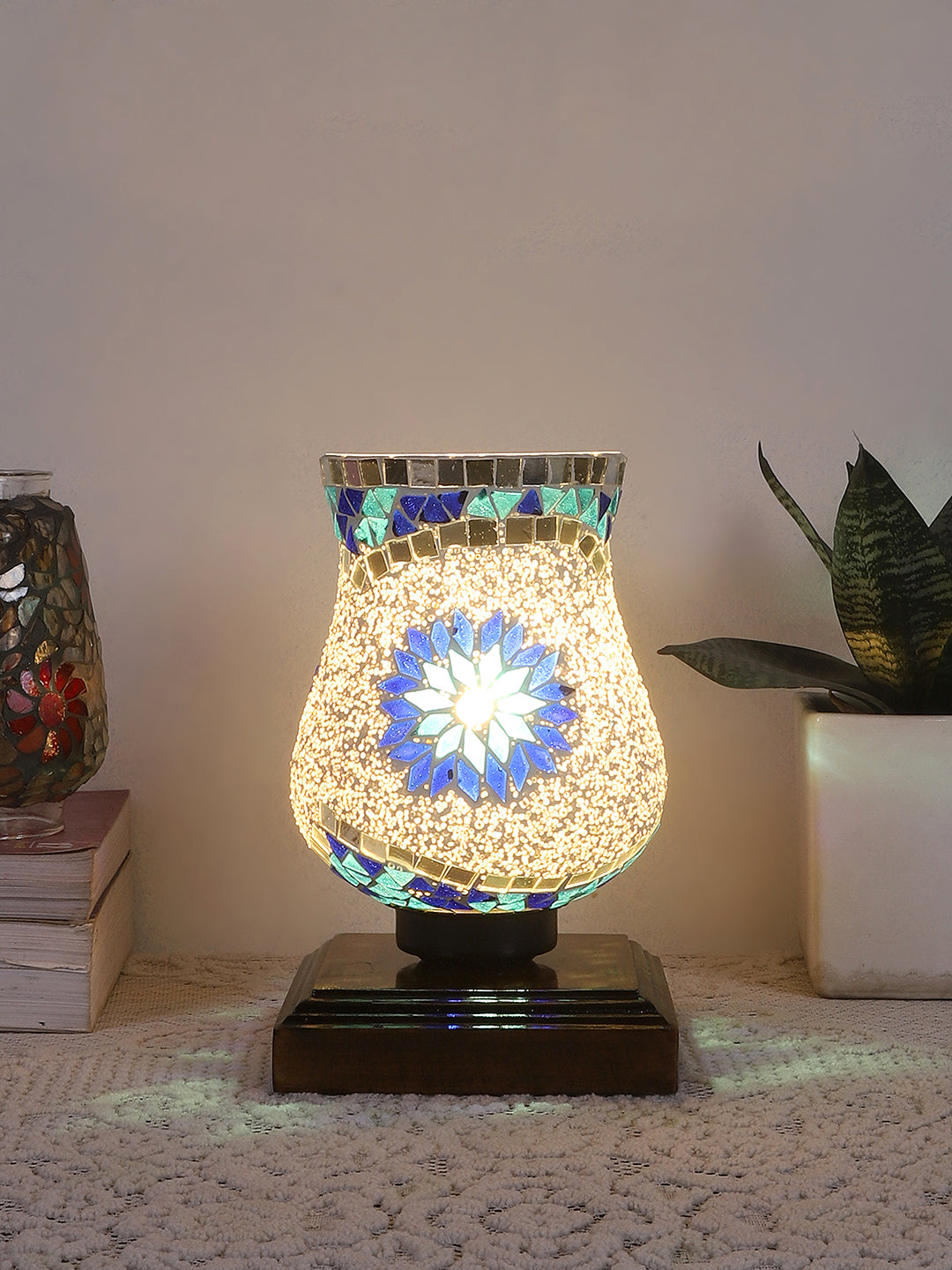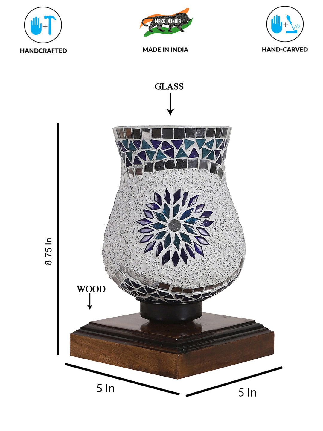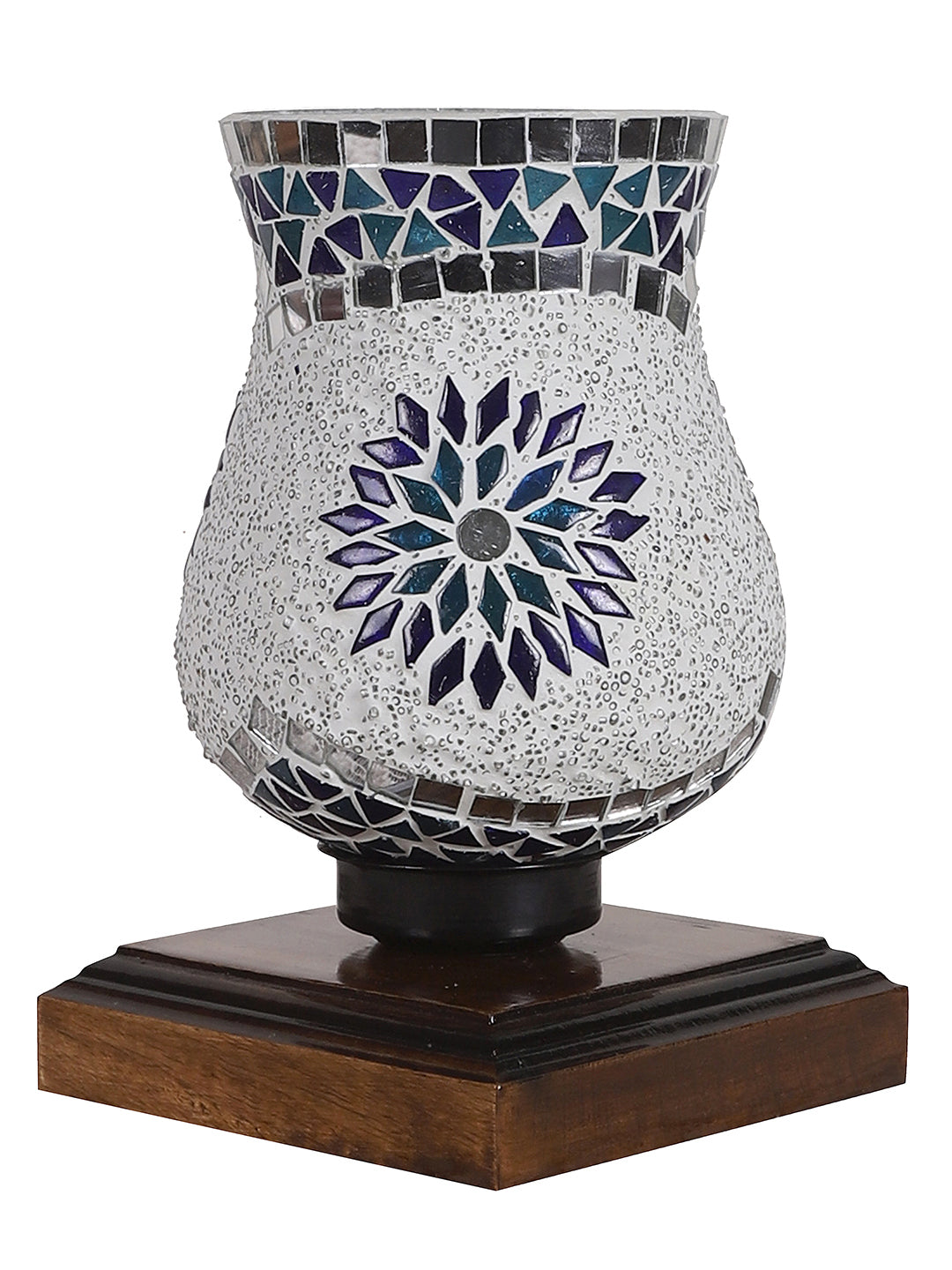 • Mosaic Glass Table Lamp with wood Square Brown Base (NM27)