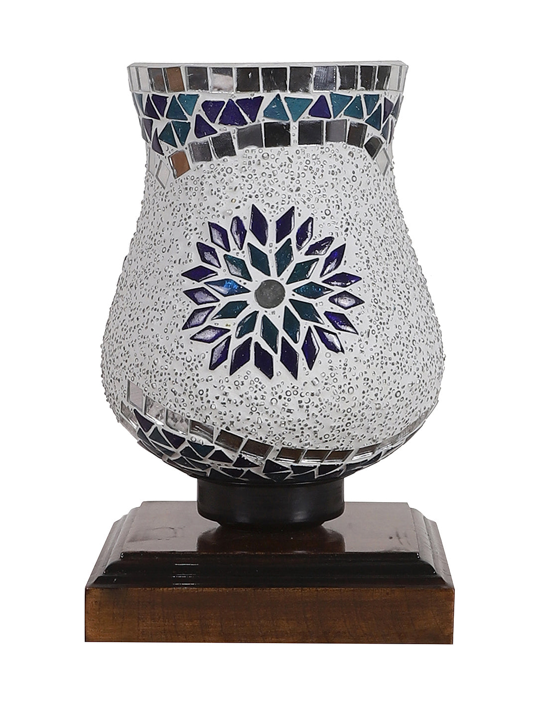 Mosaic Glass Table Lamp with wood Square Brown Base (NM27)