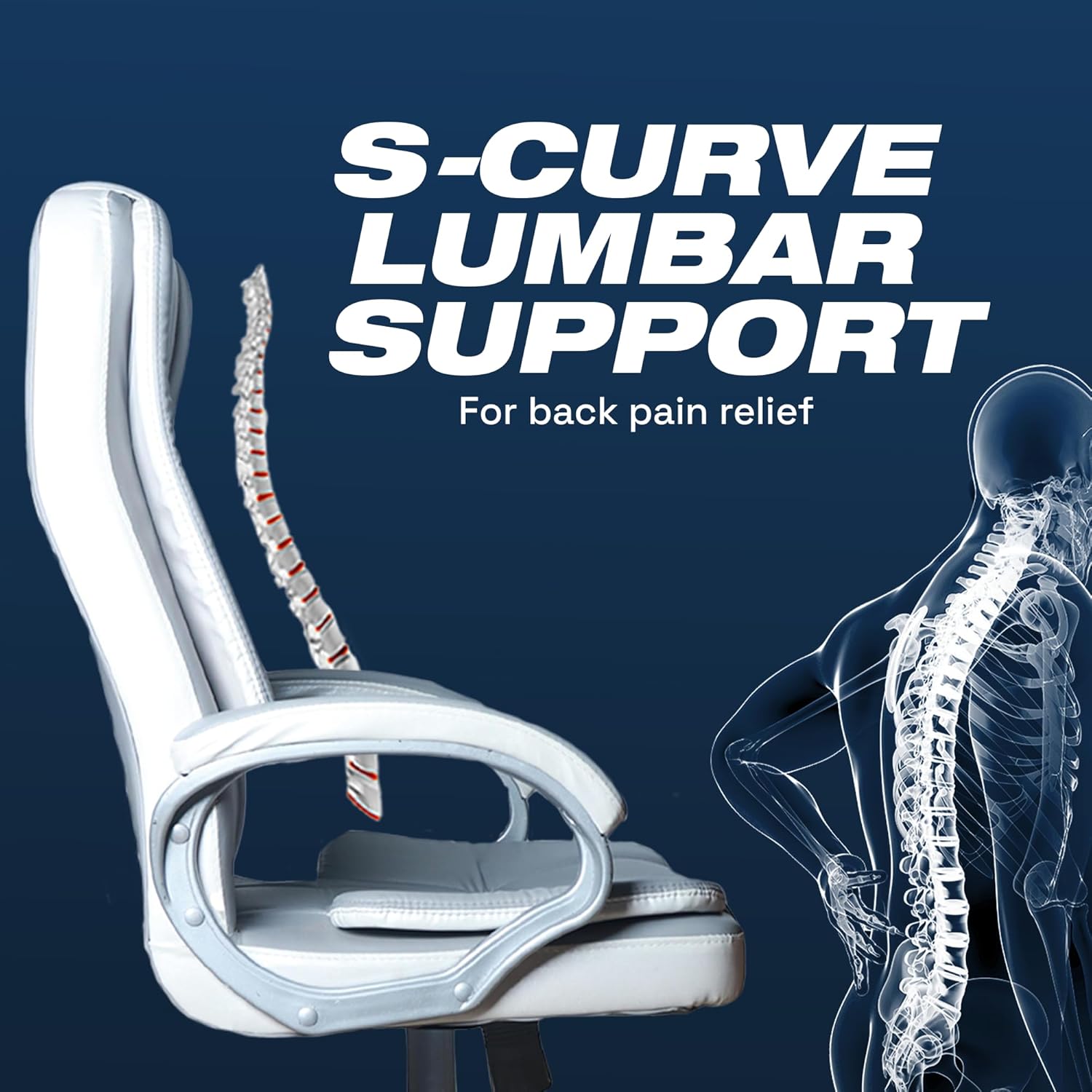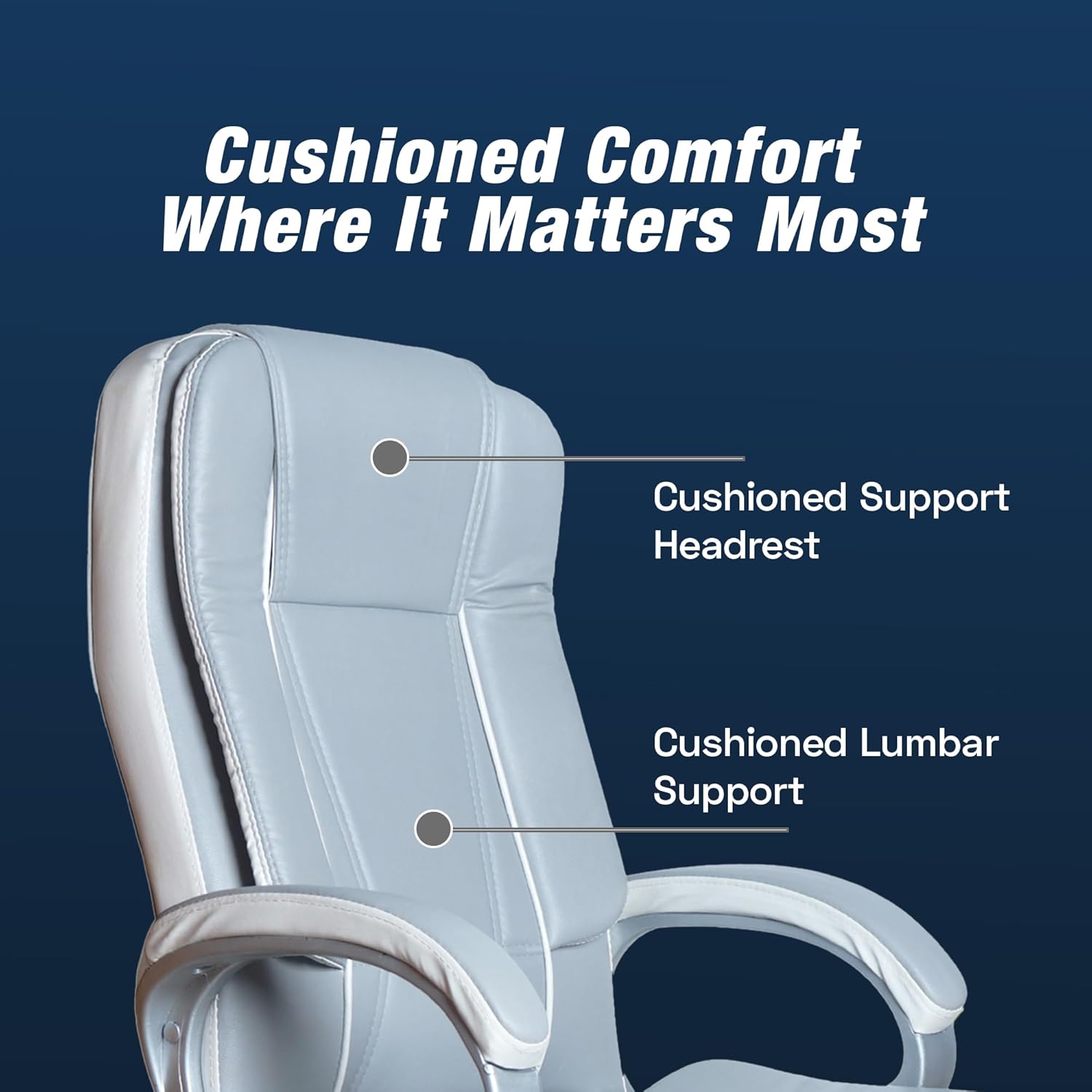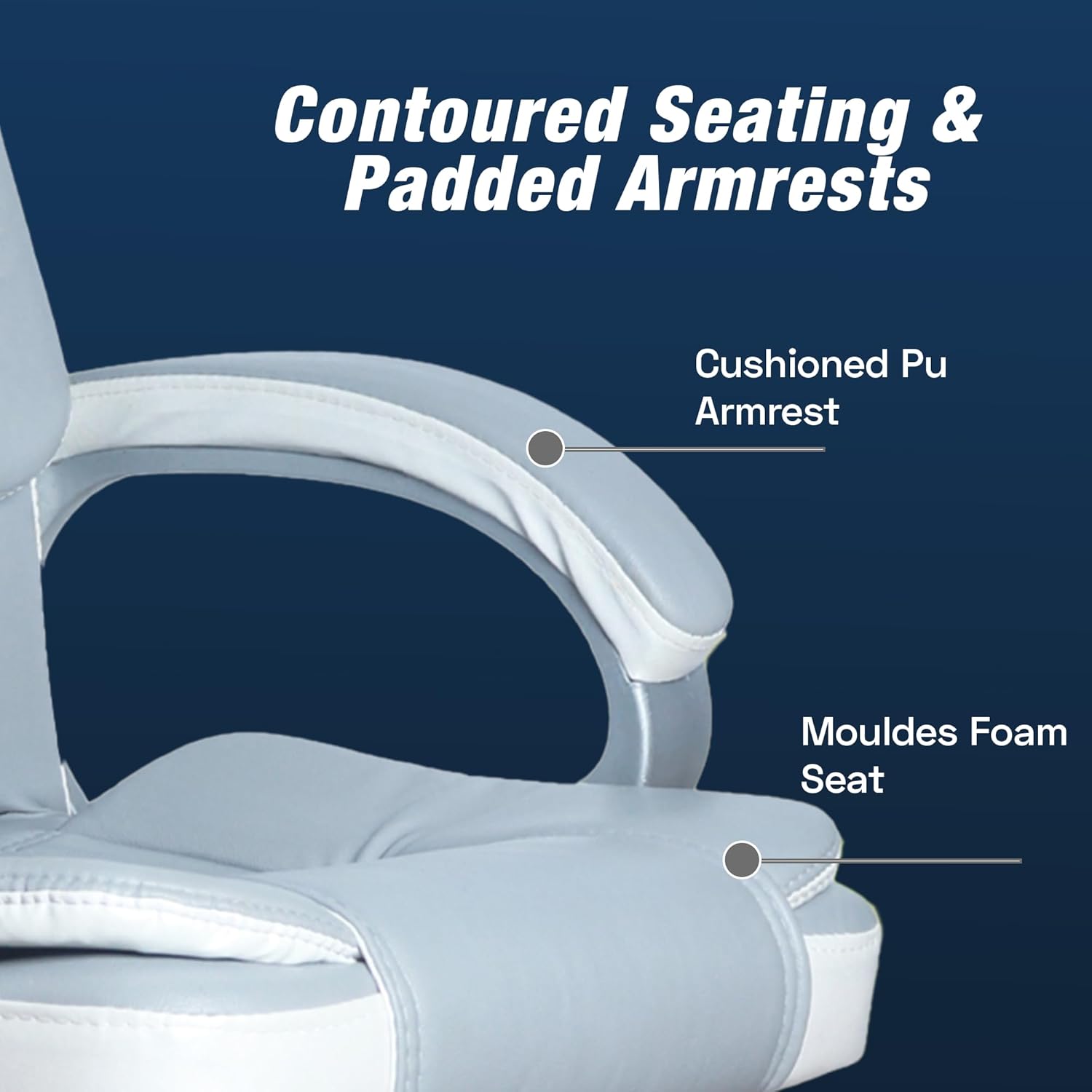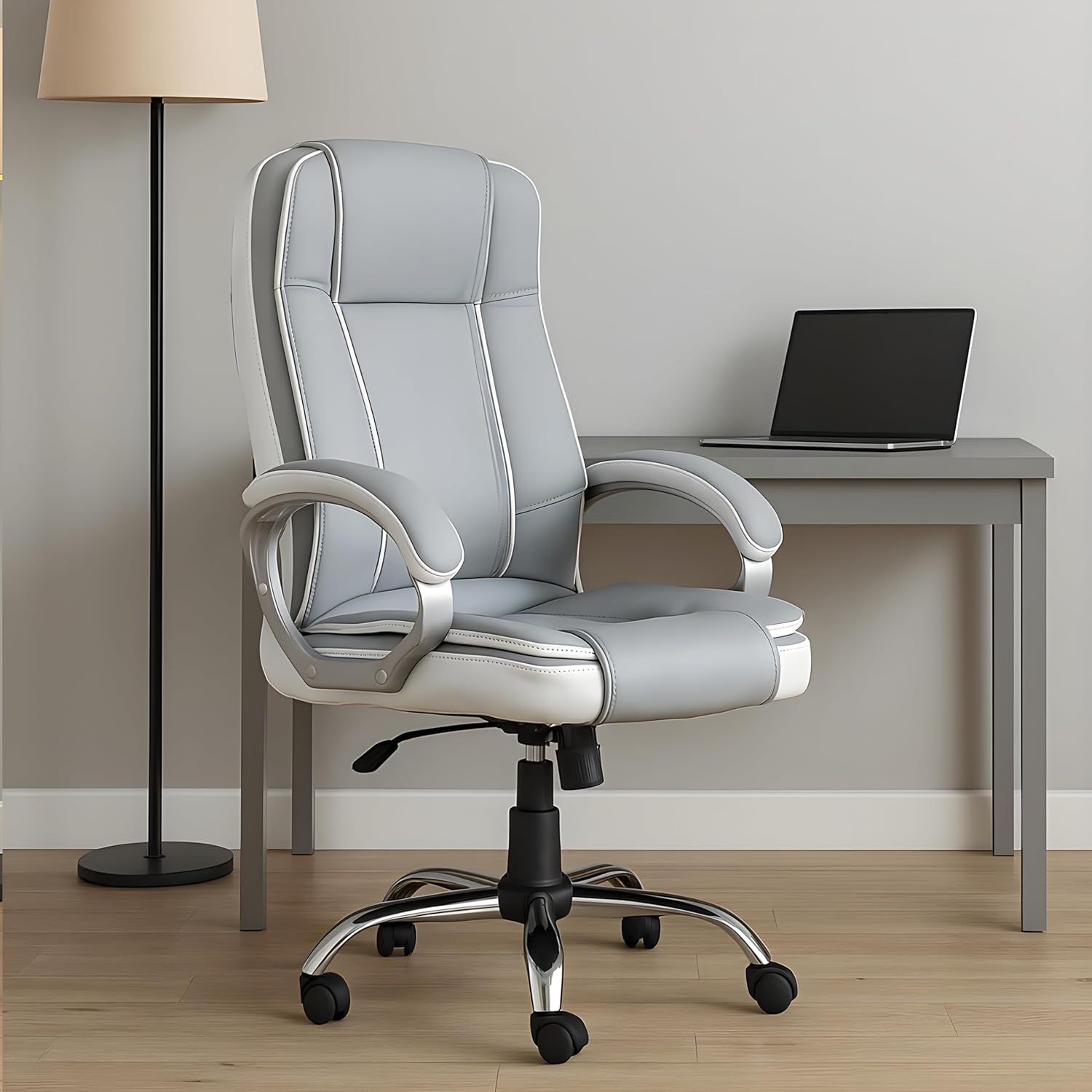 Modern Dual-Tone Design: Upholstered in stylish Grey & White Leatherette (Faux Leather) to create a contemporary, executive look that brightens any workspace. (Keywords: Grey and White Office Chair, Two-Tone Leatherette, Modern Desk Chair)